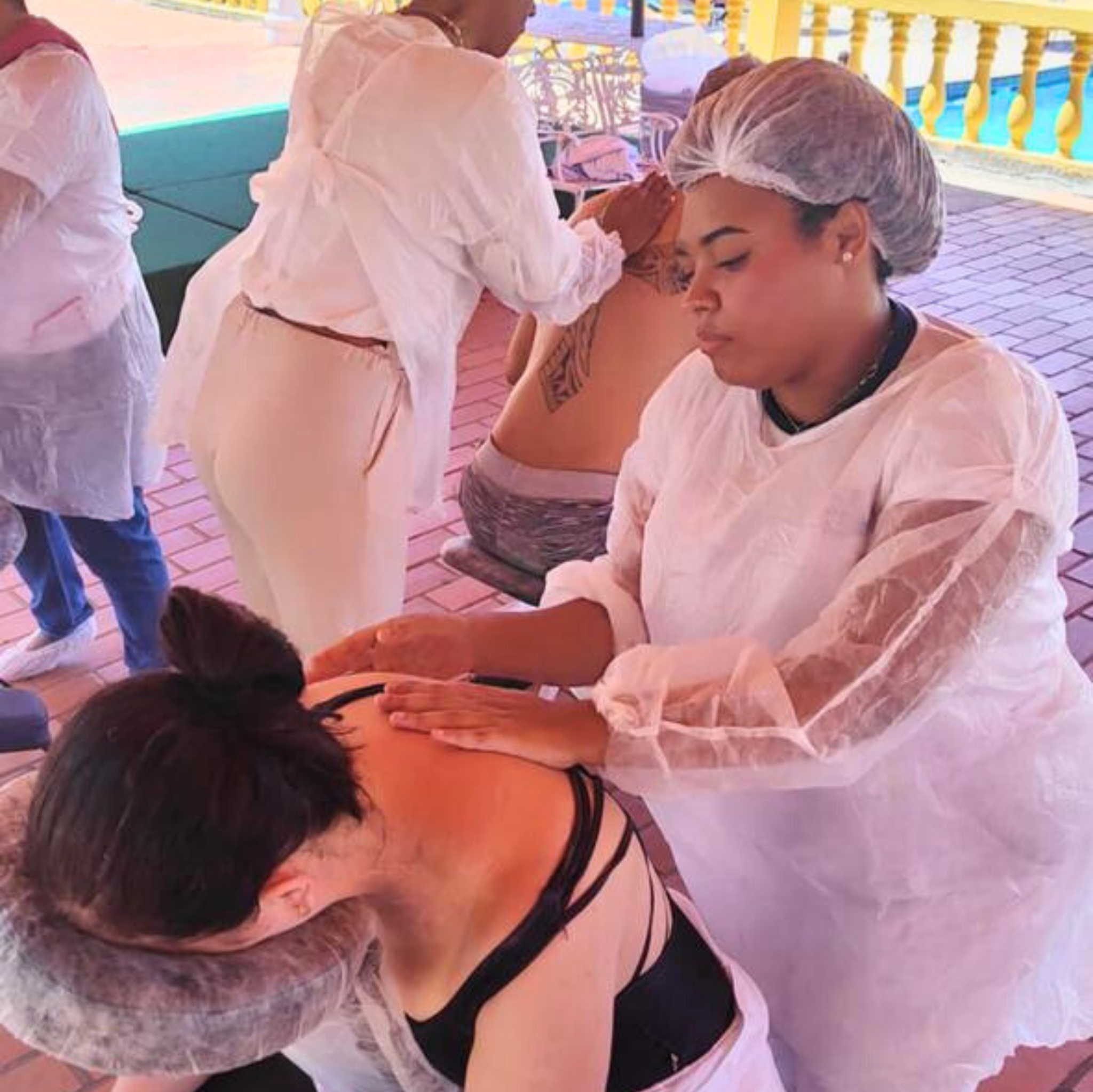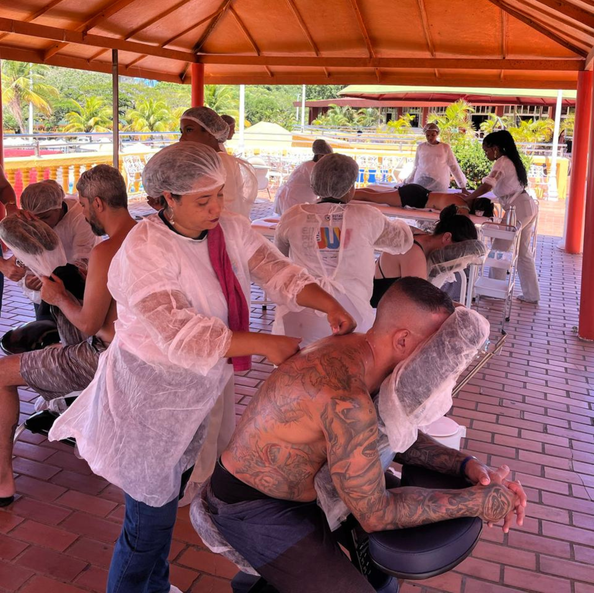 A iniciativa contou com atendimentos de massagem realizados pelos alunos do curso de Qualificação Profissional em Massagista do Senac, que foram supervisionados por seus instrutores durante toda a atividade. Essa foi uma oportunidade única para os estudantes colocarem em prática tudo o que aprenderam em sala de aula, enquanto nossos hóspedes desfrutavam de um cuidado especial.
