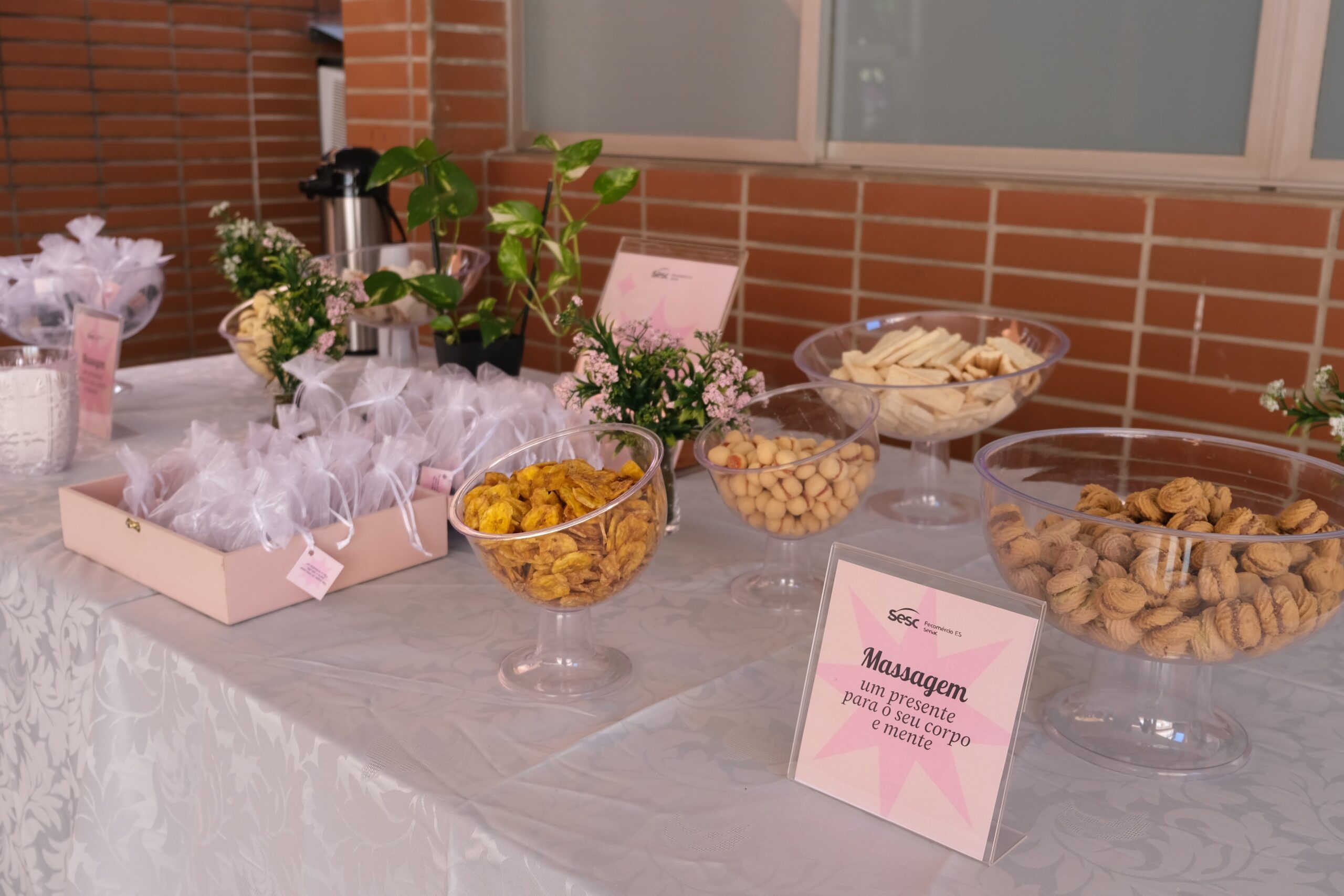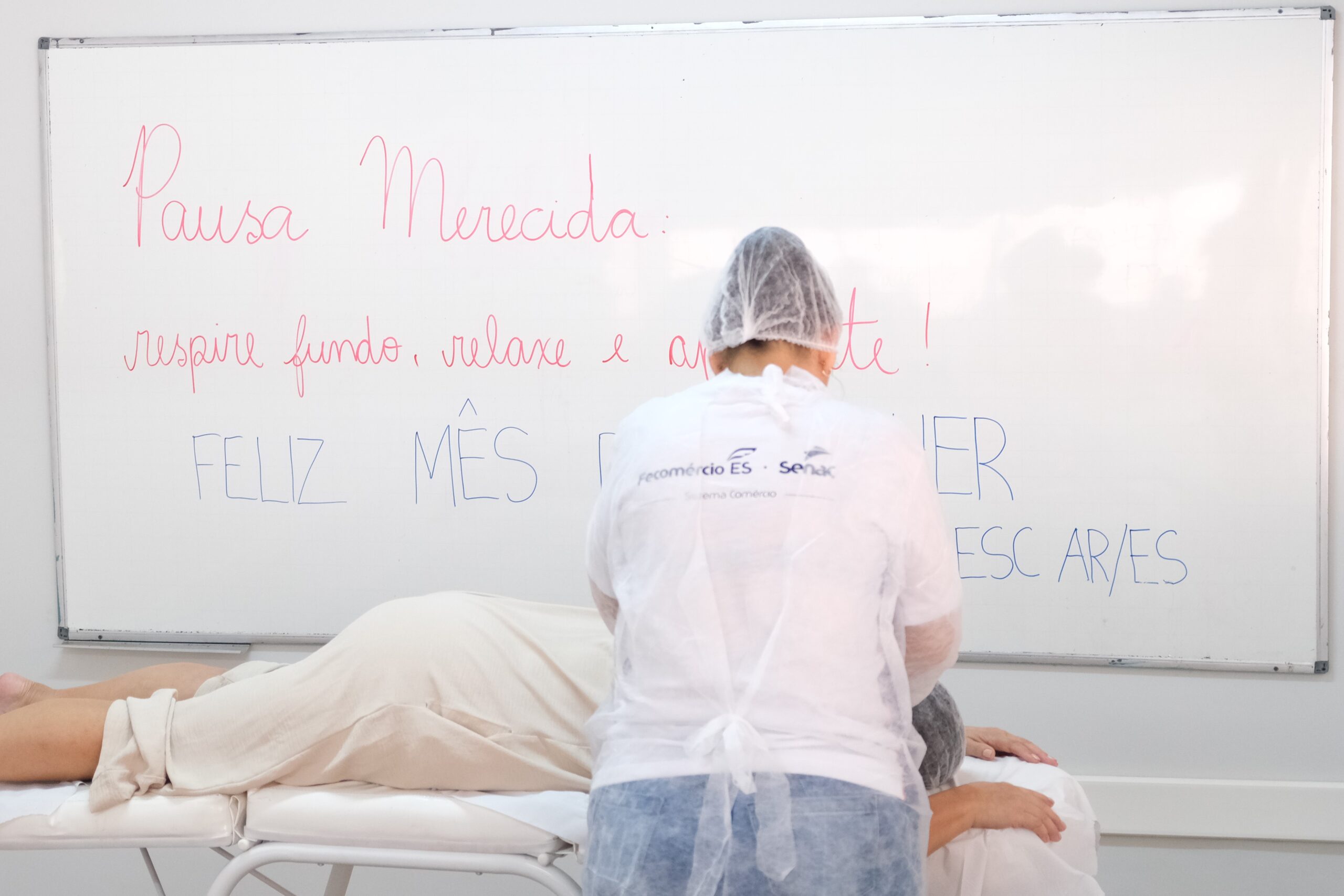 Além disso, no dia 28 de março, o Sesc proporcionou um momento de massagem e relaxamento para as funcionárias, realizado pelos os alunos do curso de Qualificação Profissional em Massagista do Senac — e supervisionado pelos instrutores do curso.