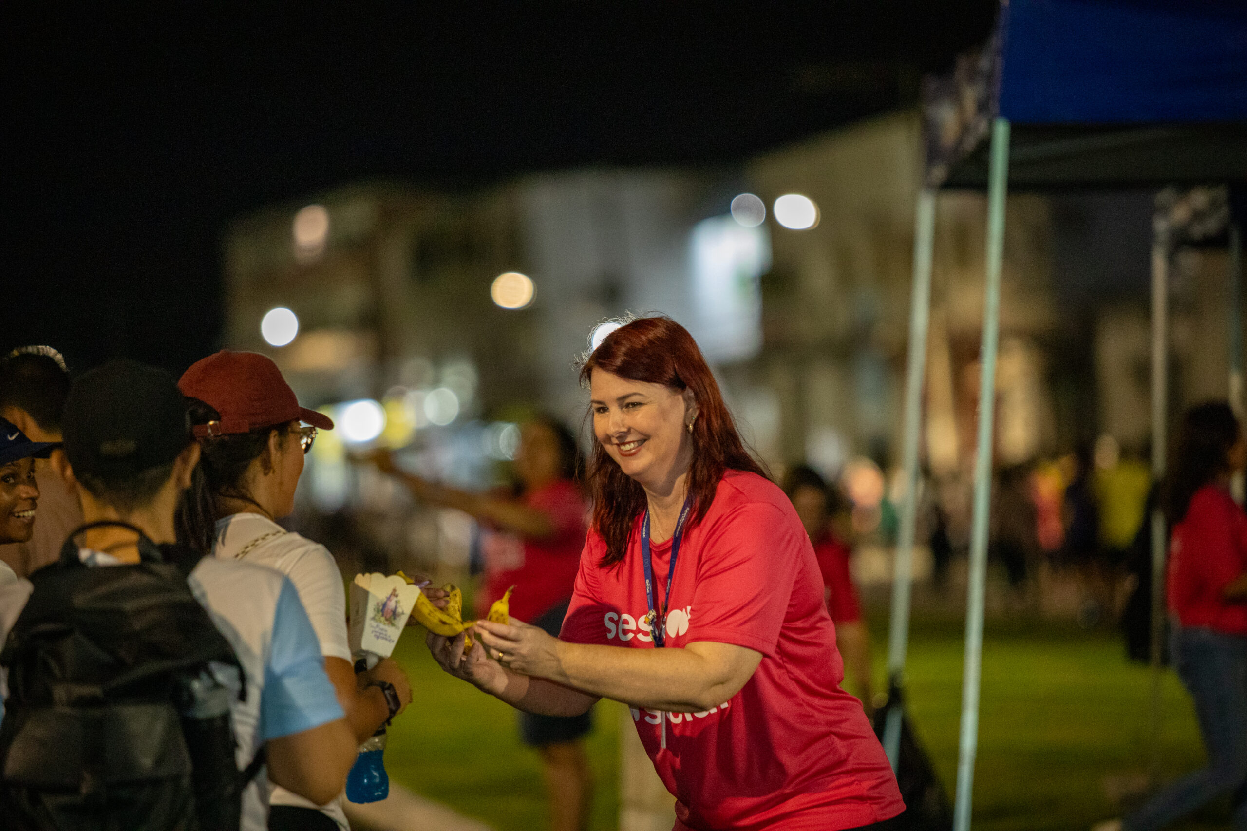 Durante a caminhada, foram distribuídos 10 mil copos de água e 1.500 kg de bananas, doados pelo programa Sesc Mesa Brasil. A ação aconteceu no espaço do agora reconhecido Sesc Vila Velha, reforçando o compromisso da instituição com a promoção da saúde e do bem-estar, mesmo nas jornadas mais desafiadoras.