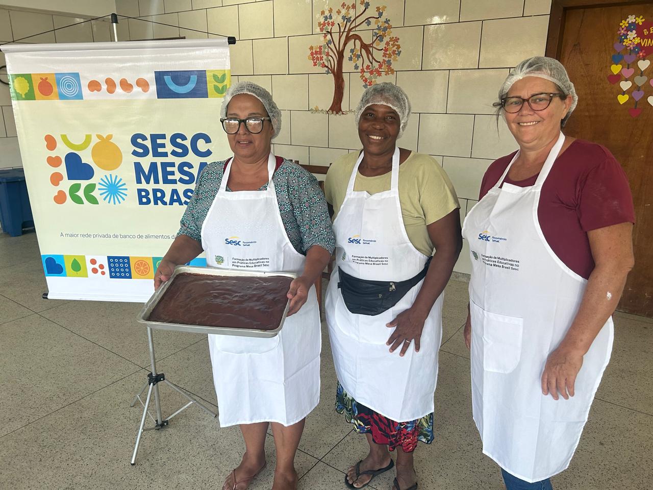 O Sesc Mesa Brasil realizou uma oficina culinária com colaboradores e representantes de famílias assistidas pela Associação Pestalozzi da Serra, no dia 24 de abril. Uma tarde repleta de delícias saudáveis e nutritivas, com a ação educativa sobre “Aproveitamento Integral dos Alimentos”.