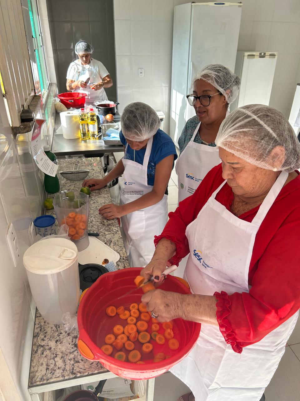 “Nossa oficina culinária tem o objetivo de conscientizar os participantes a evitar o desperdício de alimentos e orientá-los sobre o uso do alimento de forma integral, por meio da elaboração de pratos saborosos, nutritivos e de baixo custo, aprimorando, assim, as habilidades culinárias”, explica a nutricionista do Sesc Mesa Brasil, Jannayna Santos.