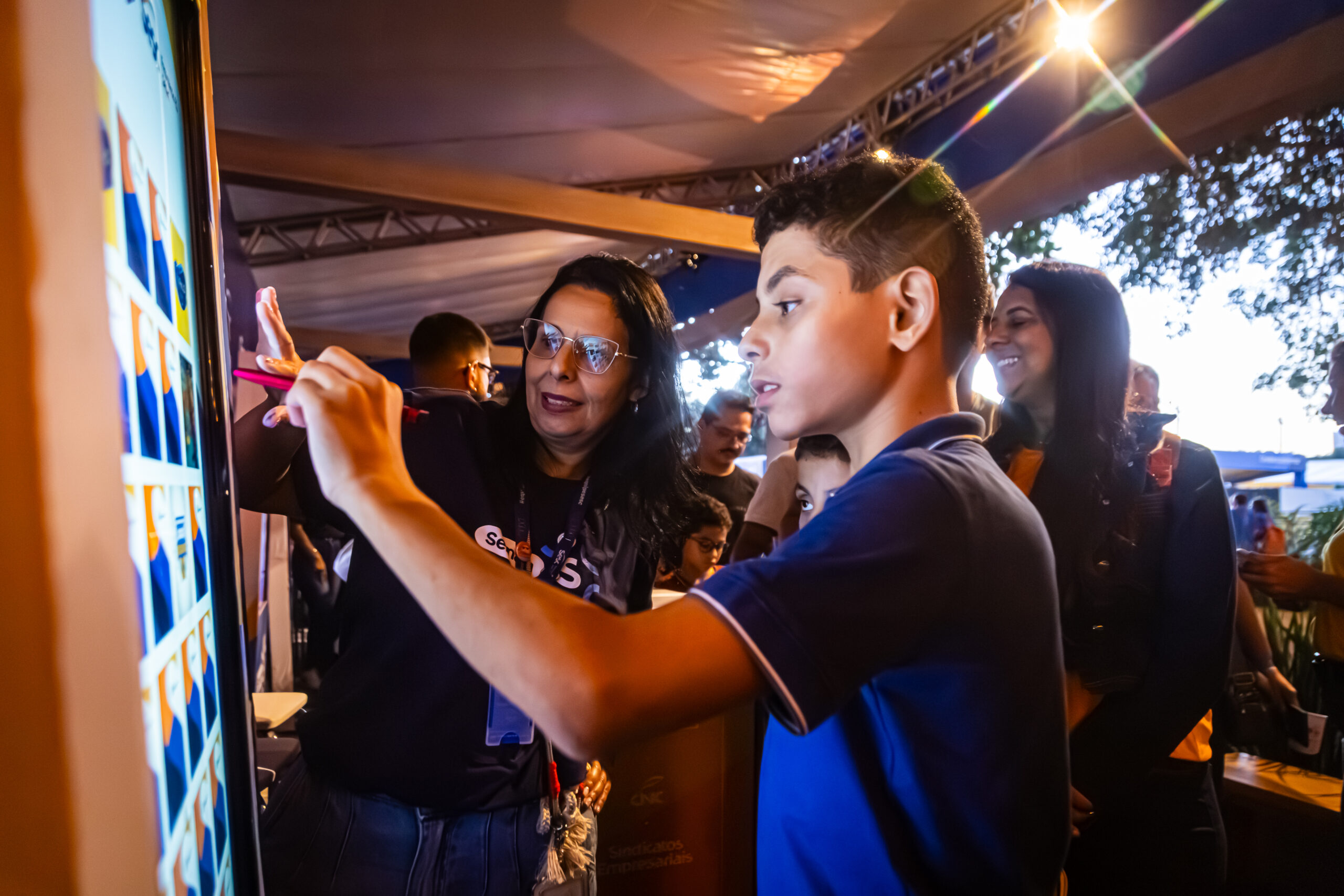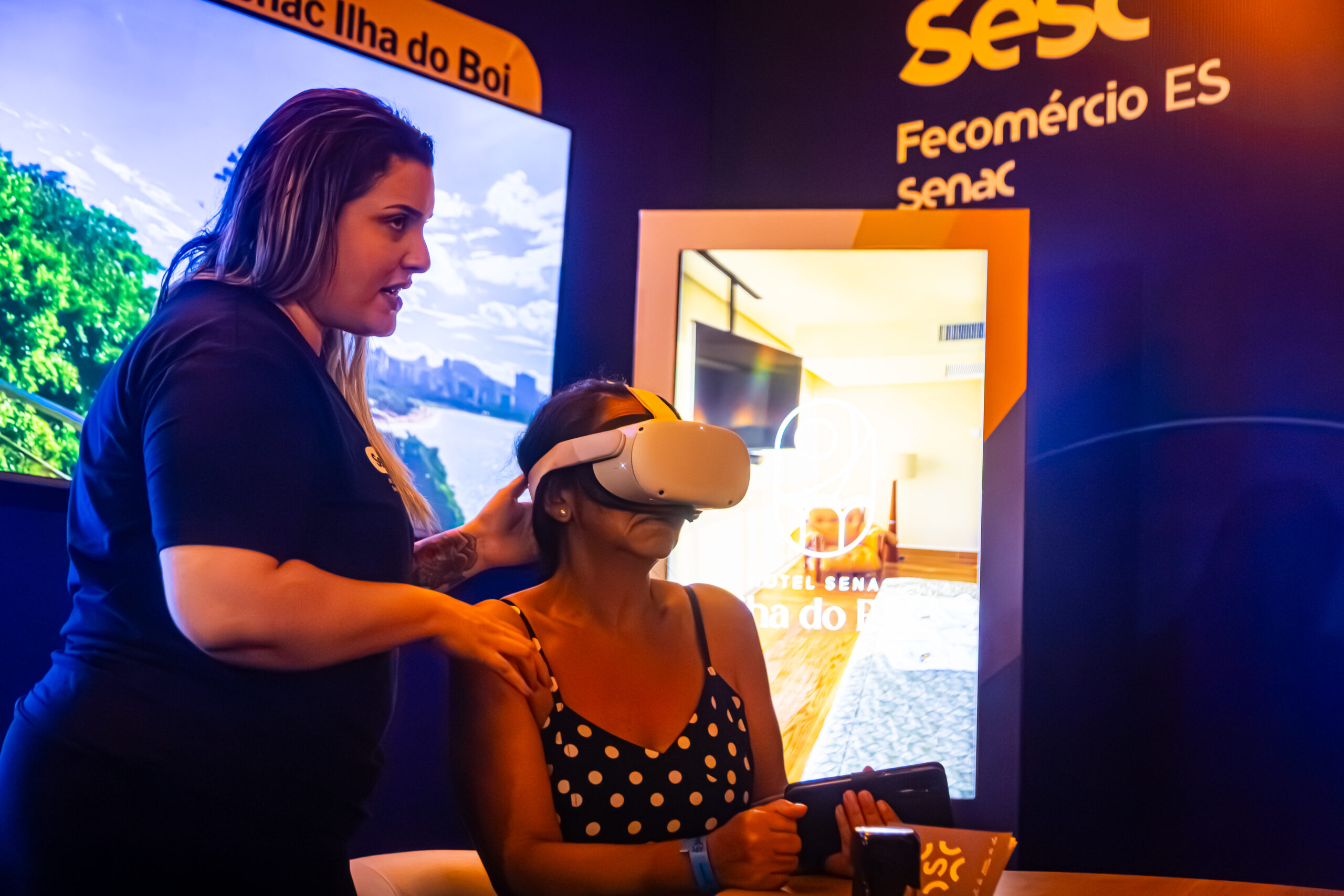 Óculos de realidade virtual, chroma key e fotografia digital foram utilizados para oferecer uma vivência imersiva aos participantes do evento, na Semana S. A iniciativa permitiu conhecer o Espírito Santo de forma interativa e atrativa, destacando atrações como a exibição virtual do Grande Buda de Ibiraçu, a maior estátua de Buda da América do Sul. Também foi possível simular passeios pelo Turismo Social do Sesc e explorar as unidades do Sesc em Praia Formosa (Aracruz), Guarapari e Domingos Martins, ampliando o contato com a cultura e o turismo local.