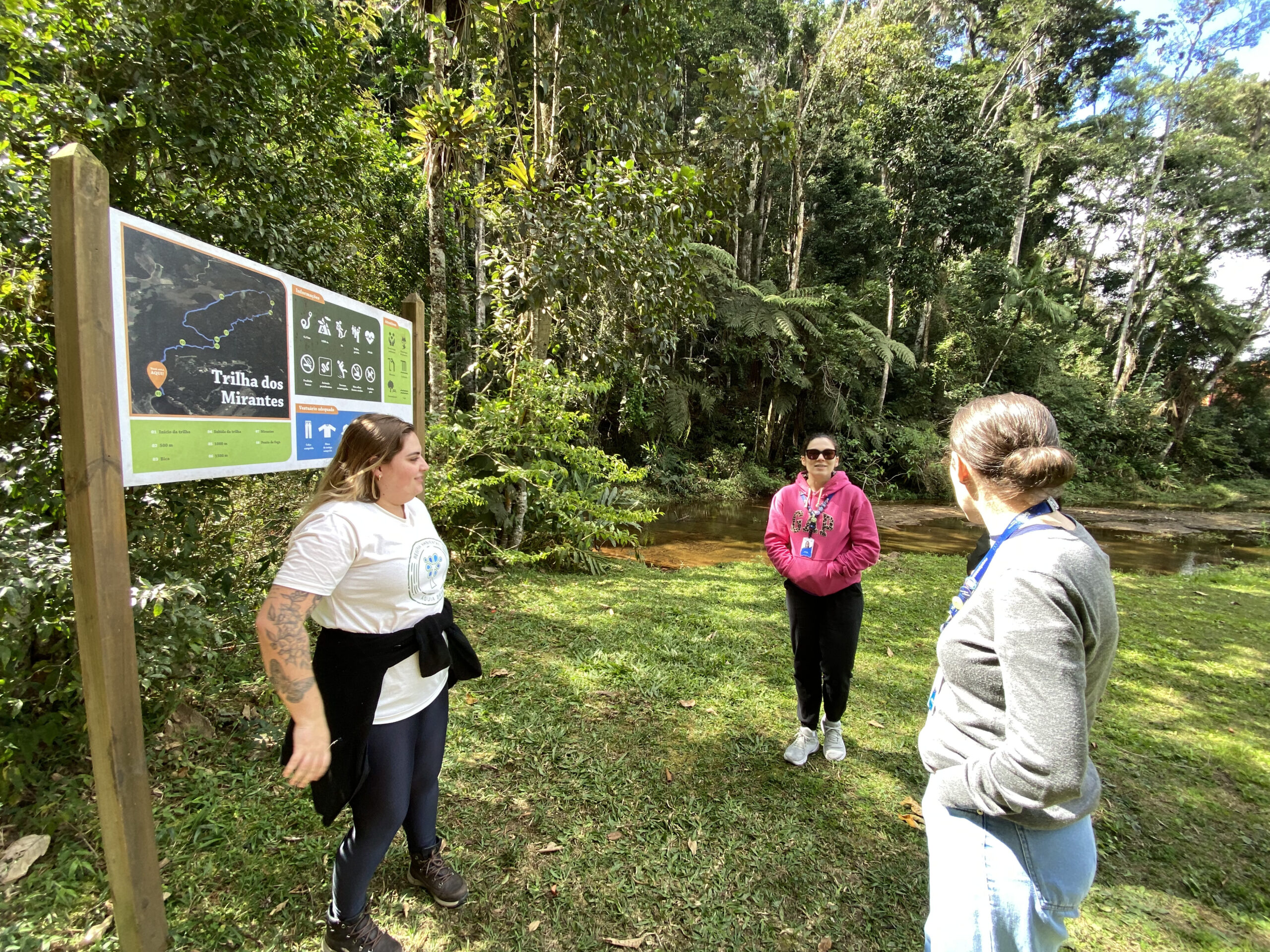 A programação contou com recepção na reserva, visita guiada pela área de mata atlântica e pelo Eco Lodge Natureza, além de um bate-papo com representantes do Grupo Águia Branca sobre os projetos e ações de sustentabilidade desenvolvidos no local. A experiência proporcionou uma imersão em estratégias de manejo ambiental, hospitalidade sustentável e educação ambiental voltada para os visitantes.