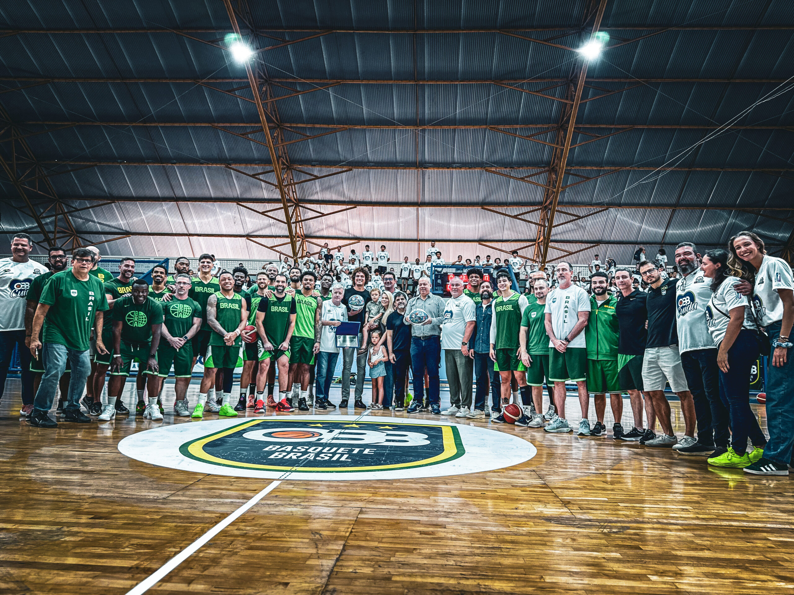 O capixaba Anderson Varejão, ídolo do basquete mundial, recebeu da Confederação Brasileira de Basquete (CBB) o título de primeiro embaixador do basquete brasileiro, nesta quarta-feira (6). A homenagem foi realizada no Sesc Guarapari, diante de quase 800 crianças presentes no ginásio. Varejão recebeu a homenagem ladeado pelos jogadores da Seleção Brasileira de basquete; do presidente da CBB, Marcelo Sousa; do presidente da Federação Capixaba de Basquete (Fecaba), Rogério Teixeira; do diretor de Programas Sociais do Sesc-ES, Romulo Gomes; do gerente de Esportes do Sesc-ES, José Vinícius; do gerente do Sesc Guarapari, Paulo Mendonça; da comissão técnica da Seleção e representantes do Instituto Anderson Varejão.