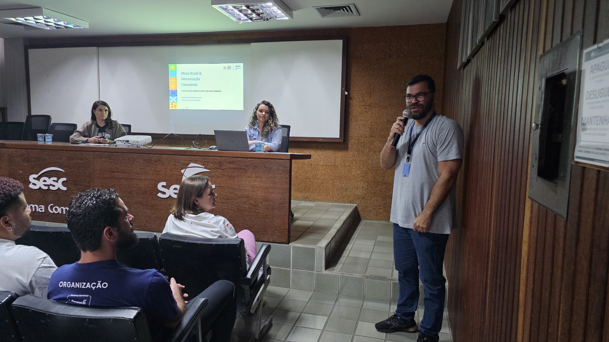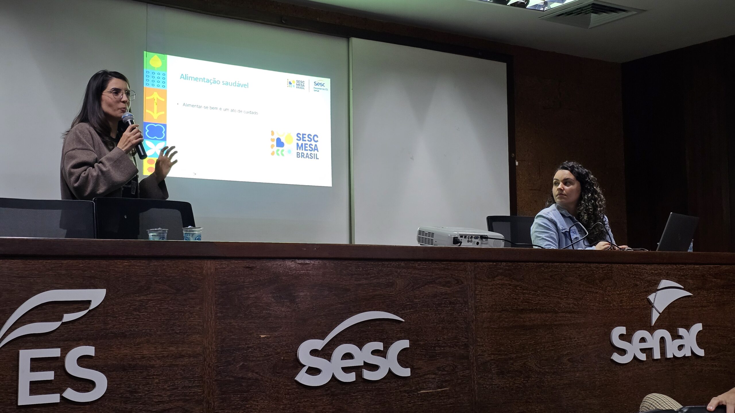 Na segunda-feira (04), foi realizada a palestra “Mesa Brasil e Alimentação Consciente: como comer melhor e viver com mais propósito”, conduzida por Gabriela Sperandio, nutricionista do Sesc-ES. O momento proporcionou reflexões importantes sobre escolhas alimentares mais equilibradas e sustentáveis, reforçando a relação entre alimentação e qualidade de vida.