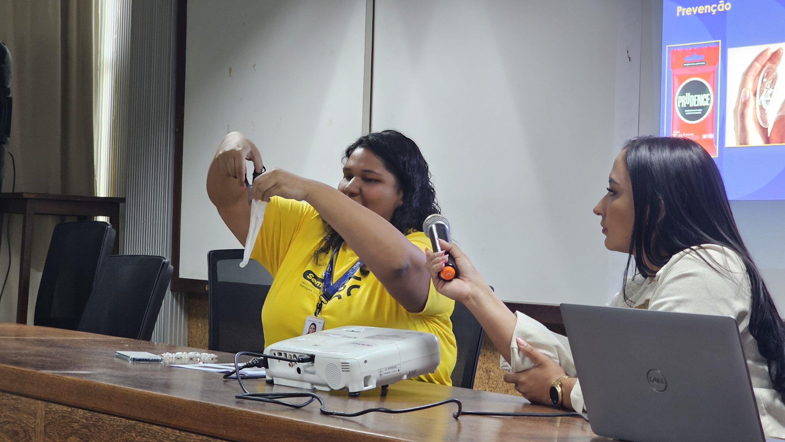 Na terça-feira (05), a programação presencial seguiu com a Roda de Conversa sobre ISTs – Infecções Sexualmente Transmissíveis, mediada pela enfermeira Livia Oliveira. De forma leve e participativa, a atividade abordou a importância da prevenção e do cuidado com a saúde sexual, envolvendo os participantes em uma dinâmica de perguntas e respostas.