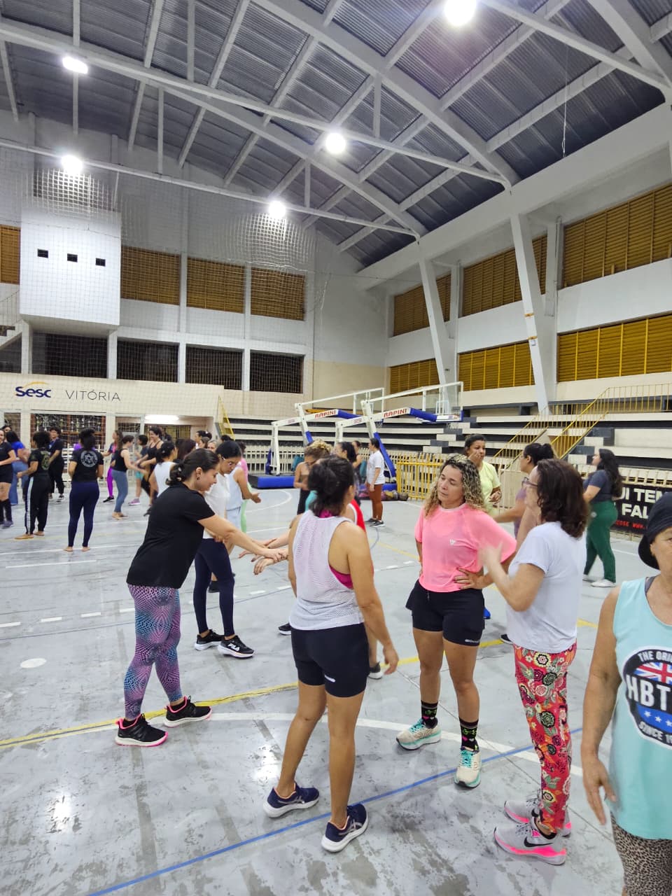 Nesta segunda-feira (25), o ginásio do Sesc Vitória foi palco de uma aula-show de defesa pessoal emocionante, ministrada pela faixa-preta Aline Rodrigues, especialista em Krav Maga e treinamento funcional, que reuniu mais de 50 mulheres para uma experiência única e empoderadora.