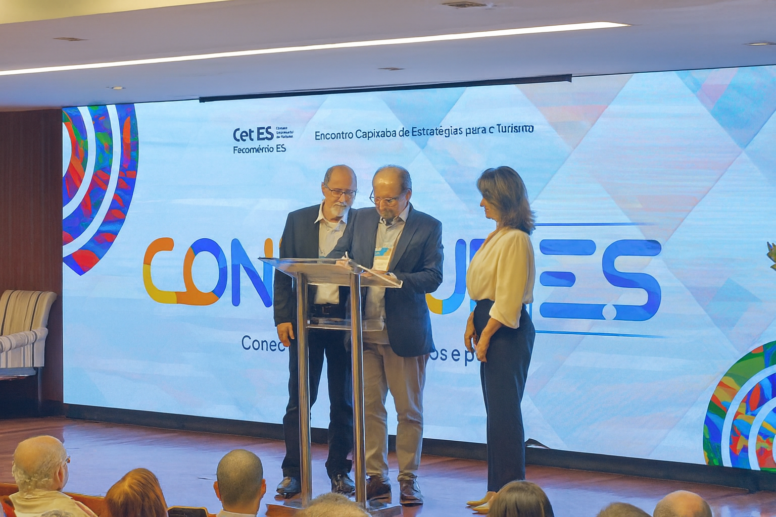 O Sistema Fecomércio-ES – Sesc e Senac oficializou hoje, sexta-feira (26), a criação da Escola Capixaba de Turismo Sesc Senac, a Tour ES, durante o ConecturES 2025 – Encontro Capixaba de Estratégias para o Turismo, que aconteceu no hotel Senac Iha do Boi, em Vitória. O projeto foi formalizado com a assinatura do presidente da Fecomércio-ES, Idalberto Moro; do diretor regional do Sesc-ES, Luiz Toniato e da diretora de Educação Profissional do Senac-ES, Dianimer Azevedo Dutra. O lançamento culminou com a celebração ao Dia Mundial do Turismo, comemorada neste sábado, dia 27.