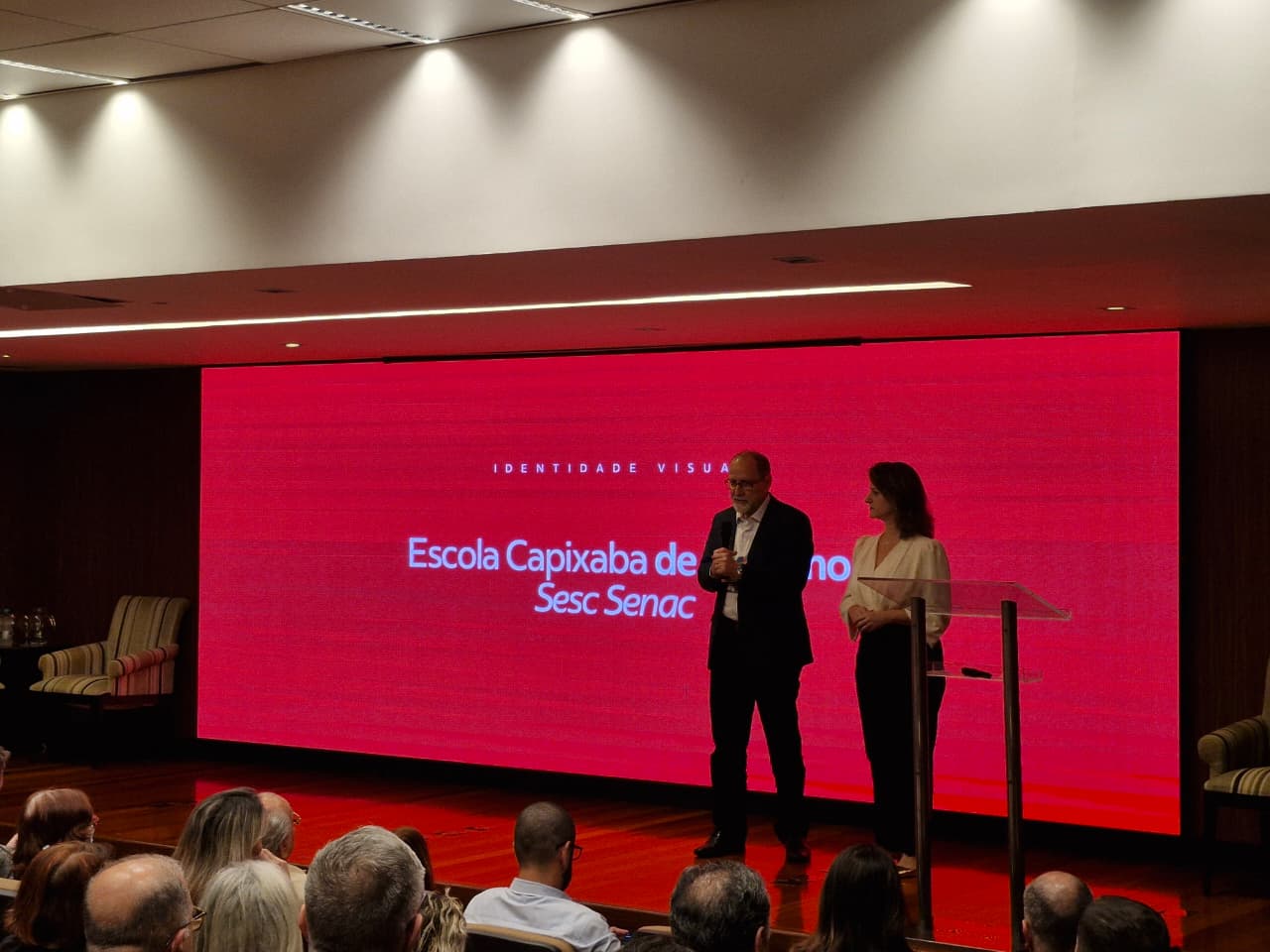 Durante o evento, também foi apresentada a identidade visual da Escola Capixaba de Turismo Sesc Senac, desenvolvida em conjunto pelas equipes de comunicação do Sesc e do Senac.
