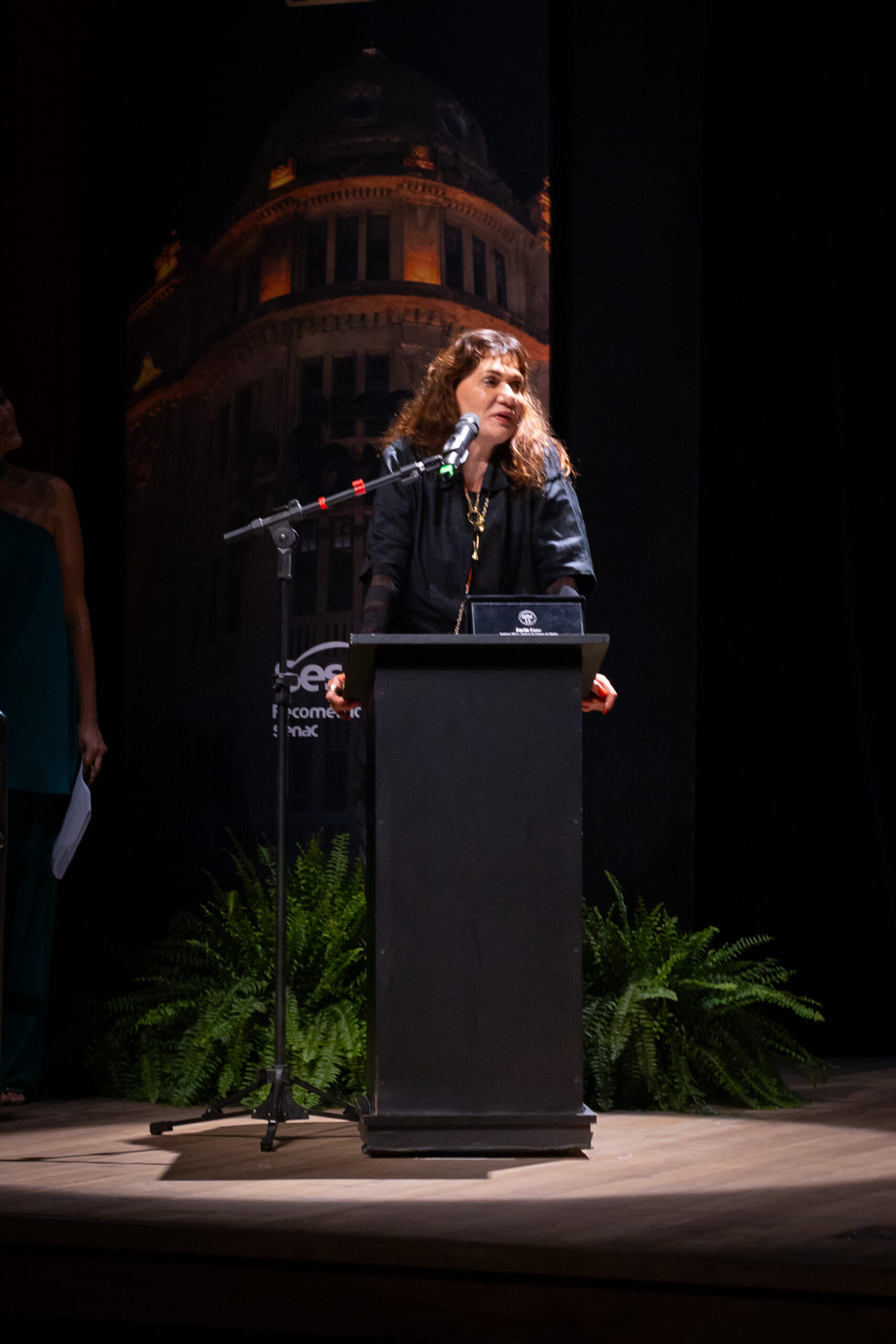 A diretora de produção da Rátimbum, Elenice Moreira, foi homenageada na categoria Clientes.“A importância do Sesc se dá em diversas frentes. Primeiro, o prédio em si, que representa a história e a memória. Isso tem uma extrema importância na formação da identidade da cidade, de dizer que aquela cidade tem uma trajetória histórica grande de seu povo. O prédio representa muito isso, estando aqui, com essa imponência no Centro Histórico, e segundo que eu acho que foi o que a gente exaltou muito aqui, como um espaço de cultura. A gente precisa identificar sempre a cultura como elemento primordial para o desenvolvimento da nossa sociedade.”