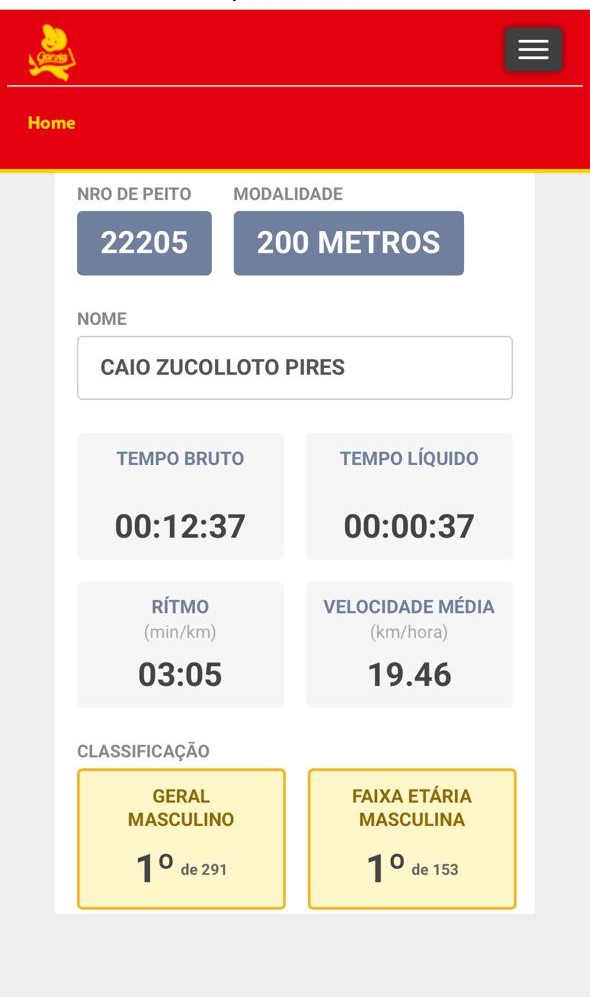 O estudante Caio Zucolloto Pires, de apenas 6 anos, aluno do 1º ano da Rede Sesc de Educação da unidade de Aracruz, foi o grande destaque da 22ª edição da Corrida Garotada, promovida pela Garoto no último sábado, dia 27 de setembro. Caio conquistou o 1º lugar na modalidade de 200 metros, completando o percurso em impressionantes 37 segundos, correndo o equivalente a quase 20 km/h.