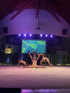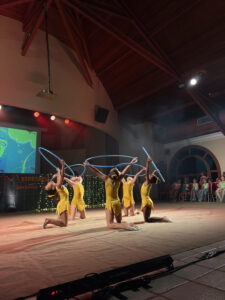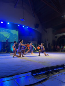 Com idades entre 4 e 12 anos, as ginastas apresentaram um espetáculo que percorreu a linha do tempo da Ginástica Rítmica no país, desde sua chegada em 1953 até sua consolidação no ambiente escolar, universitário e competitivo. O roteiro destacou as pioneiras brasileiras, que impulsionaram a prática e abriram caminho para o reconhecimento internacional, além de valorizar a forma como a modalidade incorporou elementos da cultura nacional.