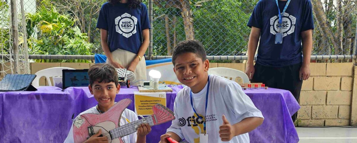 Na unidade do Sesc Cariacica, o projeto “Aprendizagem Criativa e Inclusão: Construindo Circuitos Elétricos no Mundo Físico e Digital com Scratch” dos alunos Nícolas de Souza Terra, do 5º ano, e Victor Emanuel Lovati Queiroz, do 3º ano foi selecionado para o Festival.