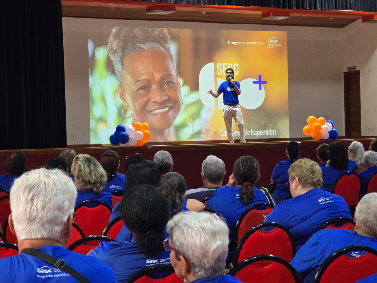 O Sesc Cachoeiro de Itapemirim viveu uma tarde de acolhimento e boas energias com o início das atividades do Projeto Sesc 60+. O evento reuniu mais de 150 pessoas, entre parceiros, equipe e comunidade, nesta segunda-feira, dia 8 de dezembro, no auditório da unidade.