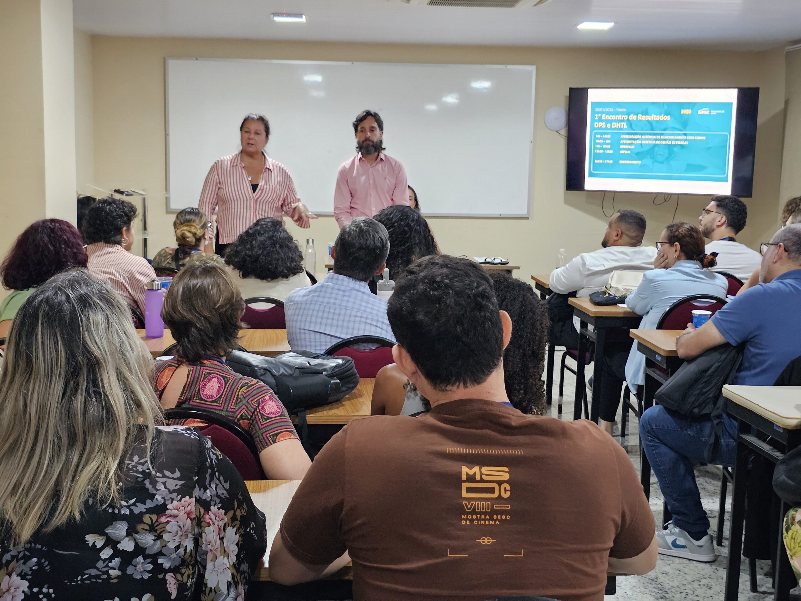 O Sesc Espírito Santo realizou o IX Encontro de Resultados das Diretorias de Programas Sociais (DPS) e de Hospitalidade, Turismo e Lazer (DHTL), no Hotel Sesc Domingos Martins, nos dias 19 e 20 de janeiro. O primeiro encontro de 2026 reuniu gestores, analistas e lideranças das áreas programáticas, operacionais e de infraestrutura, para apresentar os principais resultados de 2025, as diretrizes estratégicas para o novo ano e reforçar o alinhamento institucional entre as equipes.