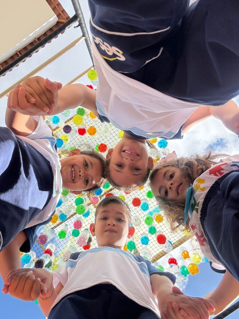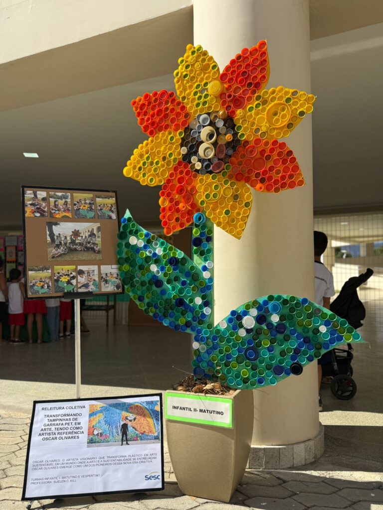 • O que foi feito? Campanha de coleta de tampinhas envolvendo as famílias, seguida de higienização e criação de obras de arte (upcycling) inspiradas em artistas como Vik Muniz. As tampinhas excedentes foram doadas para uma ONG de proteção animal.