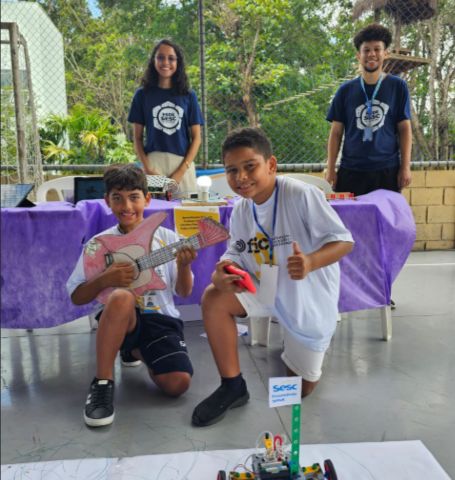 • O que foi feito? Projeto colaborativo onde um aluno com hiperfoco em eletricidade montou o circuito físico e outro desenvolveu o jogo na plataforma Scratch, integrando habilidades,.