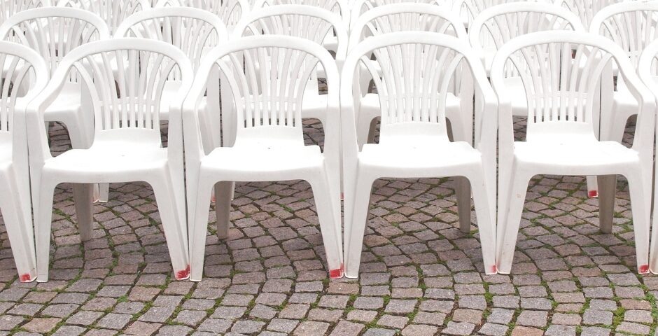 • O que foi feito? Montagem e desmontagem ágil de uma estrutura de auditório (som, cadeiras, layout) no pátio interno para cada evento específico, otimizando a área de circulação.