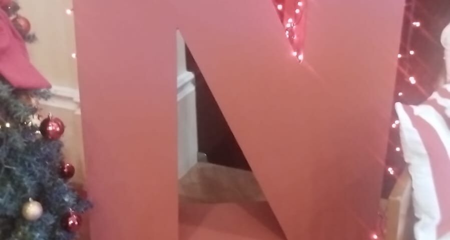 • O que foi feito? Restauração da peça (lixamento e pintura) e instalação de fitas de LED, transformando o lixo em um item de destaque na decoração natalina da recepção.