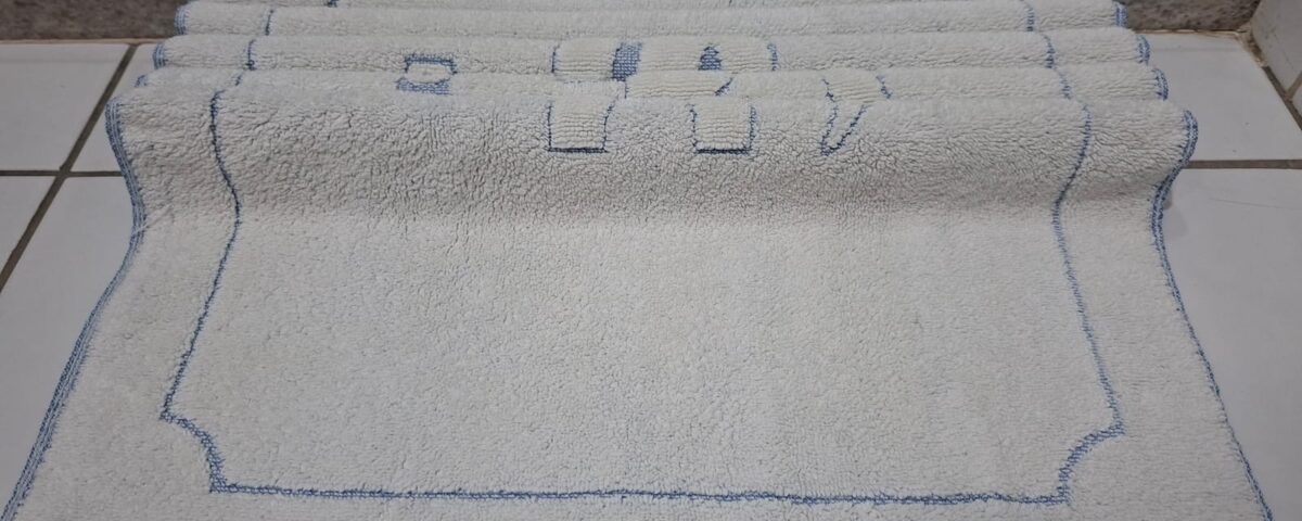 • Qual era o problema? A toalha de piso ficava dobrada em cima da pia, muitas vezes sendo confundida com toalha de rosto, deixando o hóspede sem proteção antiderrapante ao sair do box.