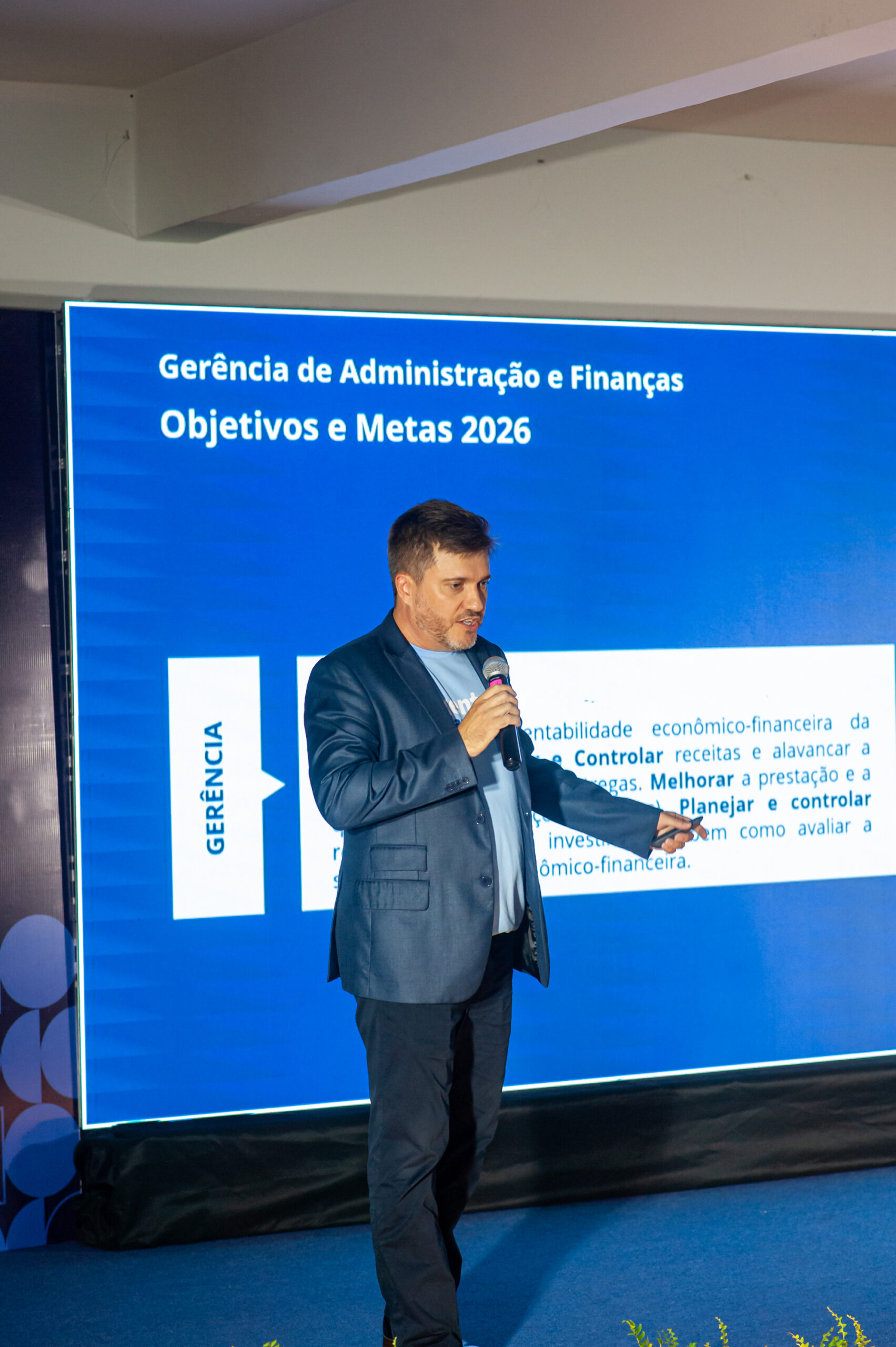 O Fórum Estratégico segue com uma programação voltada para inovação e melhoria de processos. No segundo dia, as gerências de Relacionamento com o Cliente, liderada por Alex Rodrigues; de Relações Institucionais, por Geraldo Schuller; e a Assessoria de Comunicação, representada pelos coordenadores Diego Guterra e Elvira Broetto, seguem apresentando seus radares estratégicos para 2026.