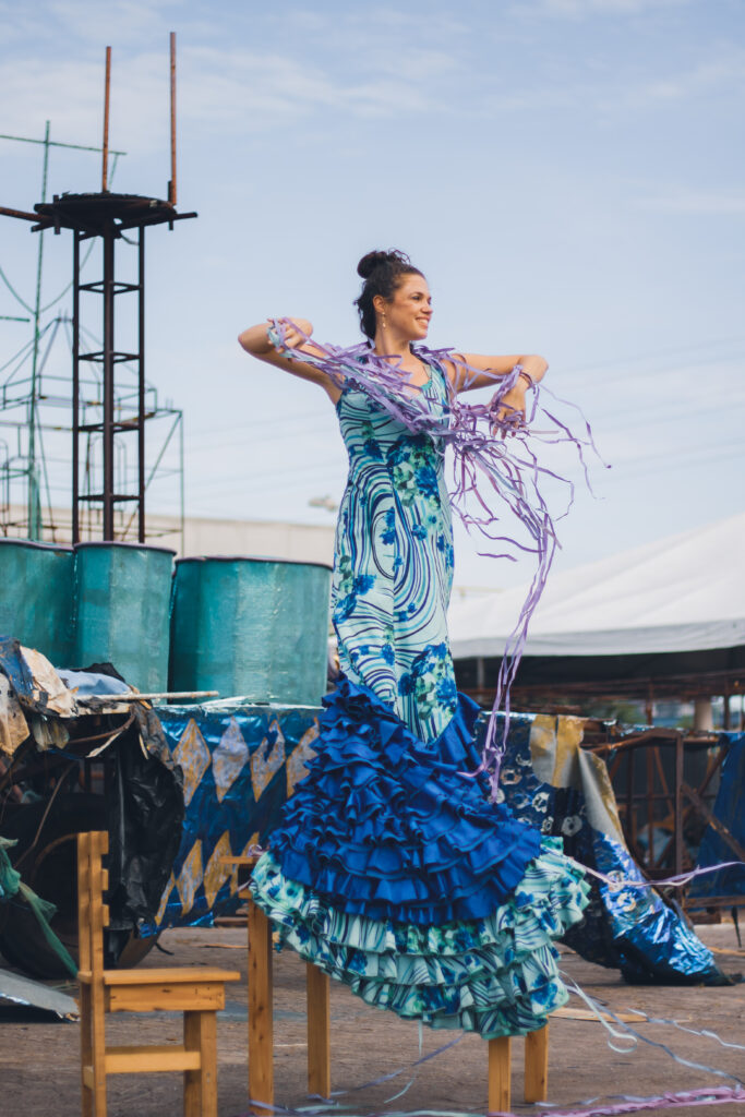 Quarta-feira de cinzas e uma mulher remexe as memórias do carnaval recém-finado. Faltam minutos para subir no tablado e o vestido ganha vida. Véspera de carnaval e uma mulher prepara-se para o breve alívio de um ano inteiro. Termina o baile e a mulher sobrevive. Termina o baile e a fantasia resiste. Uma mulher se desfaz entre confetes e sapateados. Uma mulher se refaz entre serpentinas e jaleos. O tempo indo e vindo entre Cartola, Paulinho da Viola, Nelson Cavaquinho e Arnaldo Antunes. Uma mulher se desfaz entre surdos. Uma mulher se refaz entre palmas. Uma mulher dança com a própria cauda. Uma mulher dança com o próprio rabo. Uma mulher dança com um vestido. Uma mulher dança sem o vestido. Uma mulher dança. Um oceano derrama-se entre o flamenco e o samba. Um oceano derrama-se dos quadris. Um oceano ruge em taróis e cajones. Palmas e tamborins. Uma mulher no meio do oceano. Amores fugazes, solidões permanentes; amores eternos, solidões efêmeras. Quem é você? Quem é ela? O baile começa. O baile acaba. Quem não gosta de flamenco, bom sujeito não é.