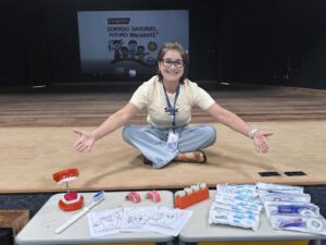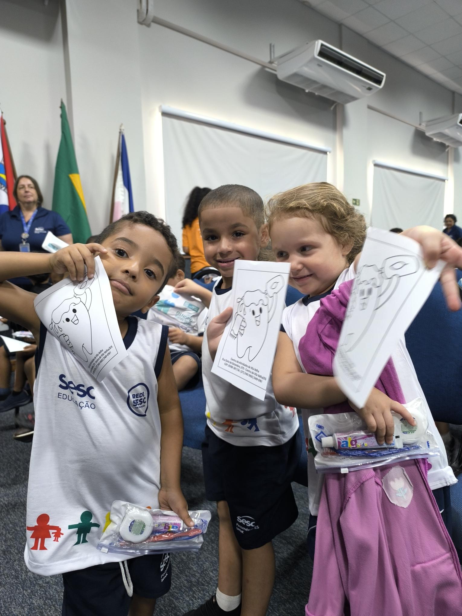 Para reforçar o aprendizado e estimular a continuidade dos cuidados no dia a dia, todos os participantes receberam kits odontológicos, contendo escova de dentes, creme dental e fio dental. Além disso, foram entregues vouchers para realização de limpeza dental, ampliando o acesso a cuidados preventivos.