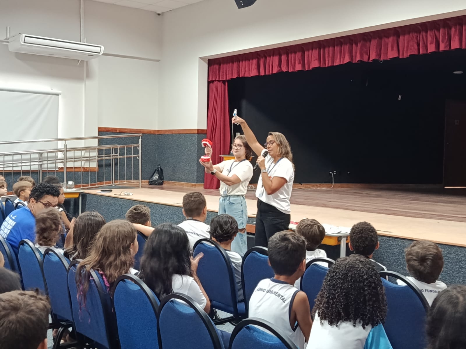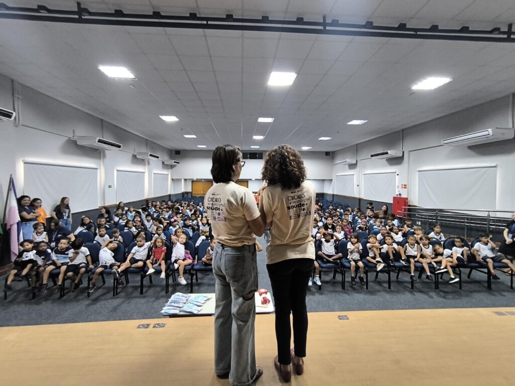 A programação foi realizada no auditório da escola e contou com a exibição do vídeo educativo “Dr. Dentuço e o Reino dos Dentes”, produzido pela Colgate. Após a apresentação, os estudantes receberam orientações práticas sobre a escovação correta e a importância dos cuidados diários com a saúde bucal.