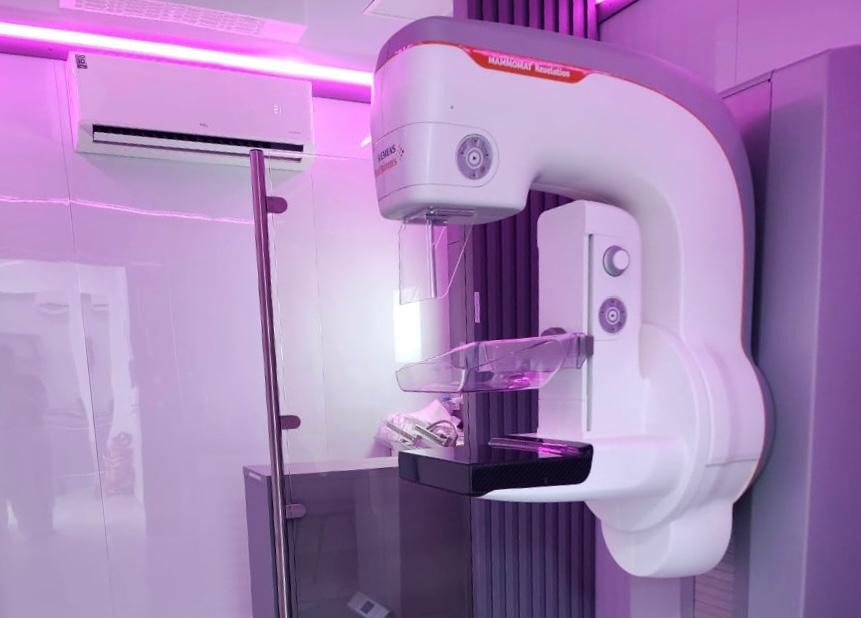 Com equipamentos modernos e tecnológicos, a unidade móvel realiza exames de mamografia e citopatológico (papanicolau), fundamentais para a detecção precoce do câncer de mama e do colo de útero.