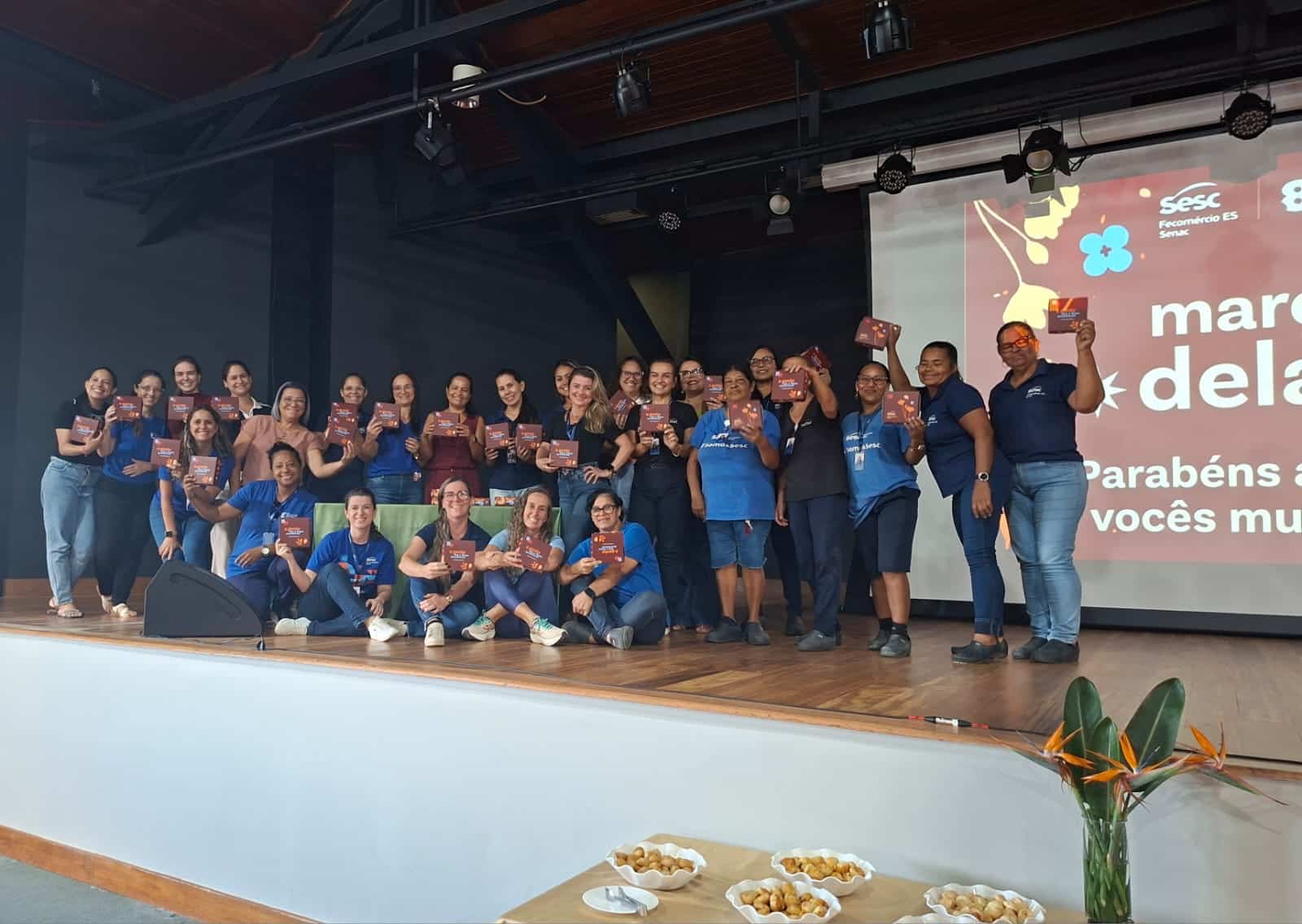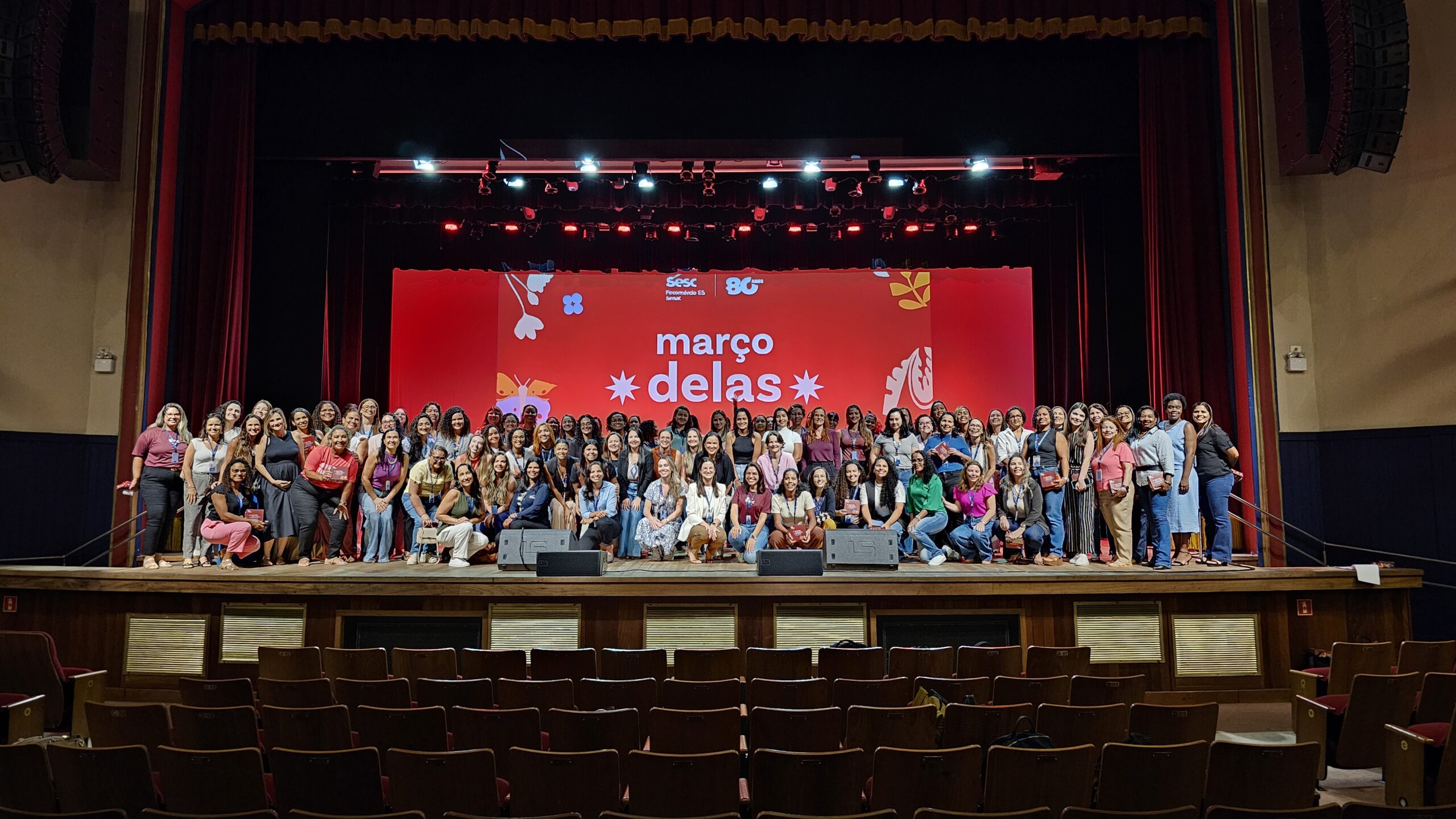 Celebrar, cuidar e reconhecer. Durante todo o mês de março o Sesc-ES promoveu uma programação especial voltada às colaboradoras, com ações pensadas para o bem-estar, a saúde e a valorização das mulheres. Atualmente, as mulheres representam 65% do quadro funcional do Sesc-ES, somando mais de mil profissionais que atuam em diferentes níveis hierárquicos e áreas de conhecimento, sendo fundamentais para a entrega da missão social da entidade em todo o estado.