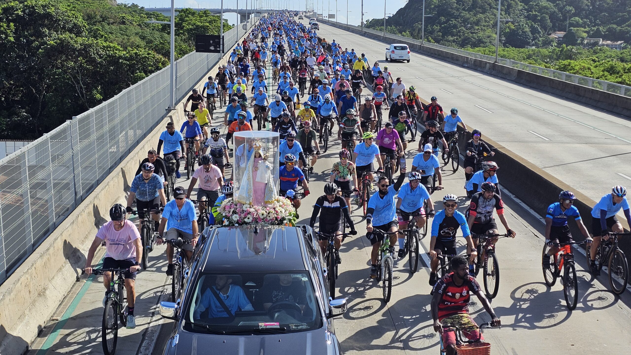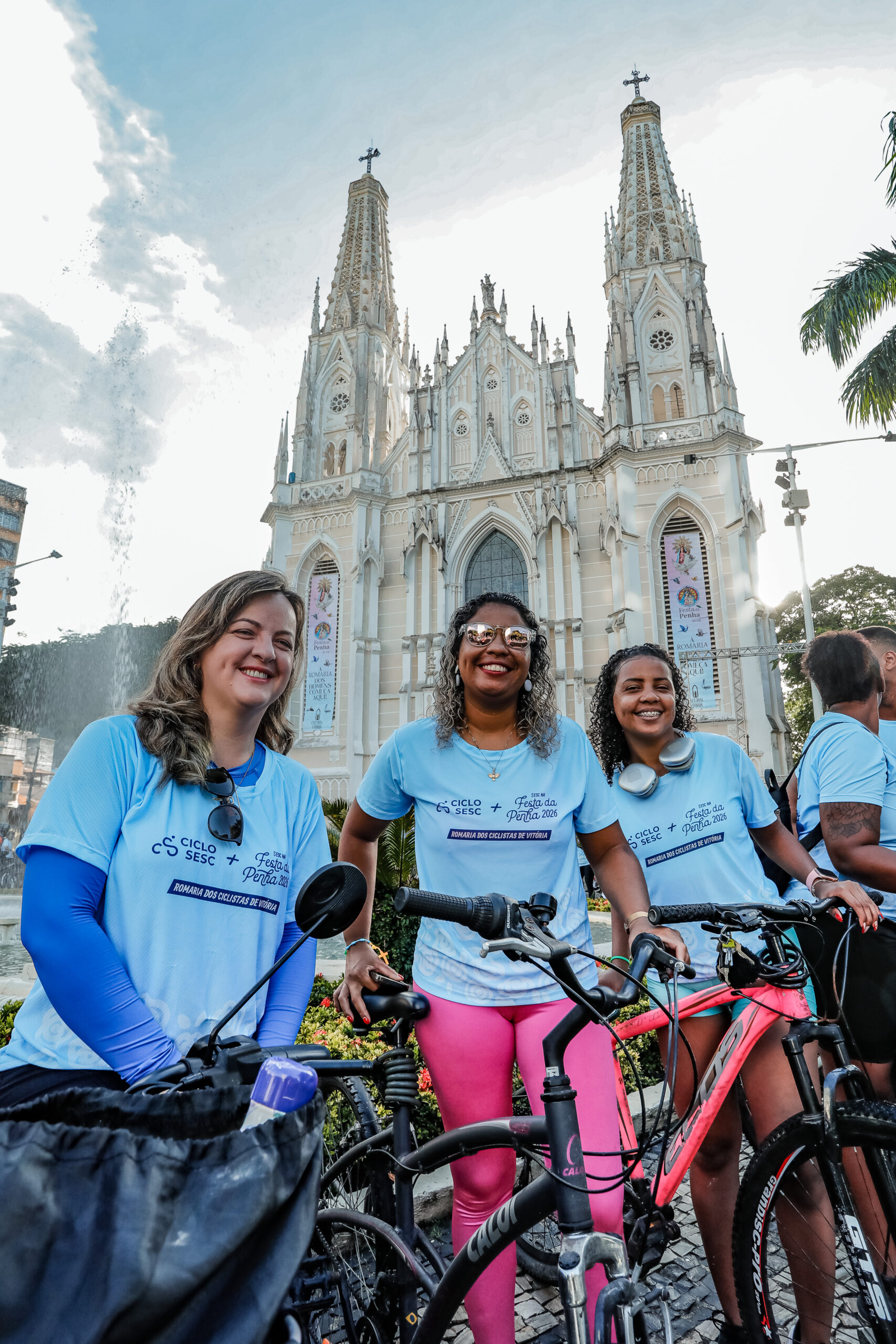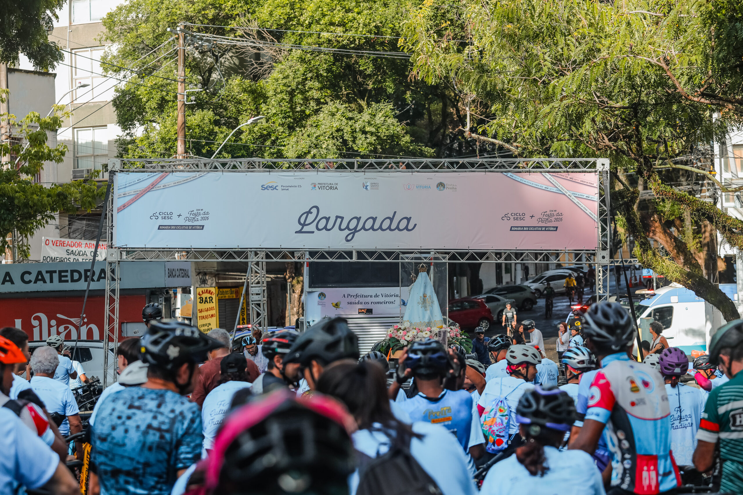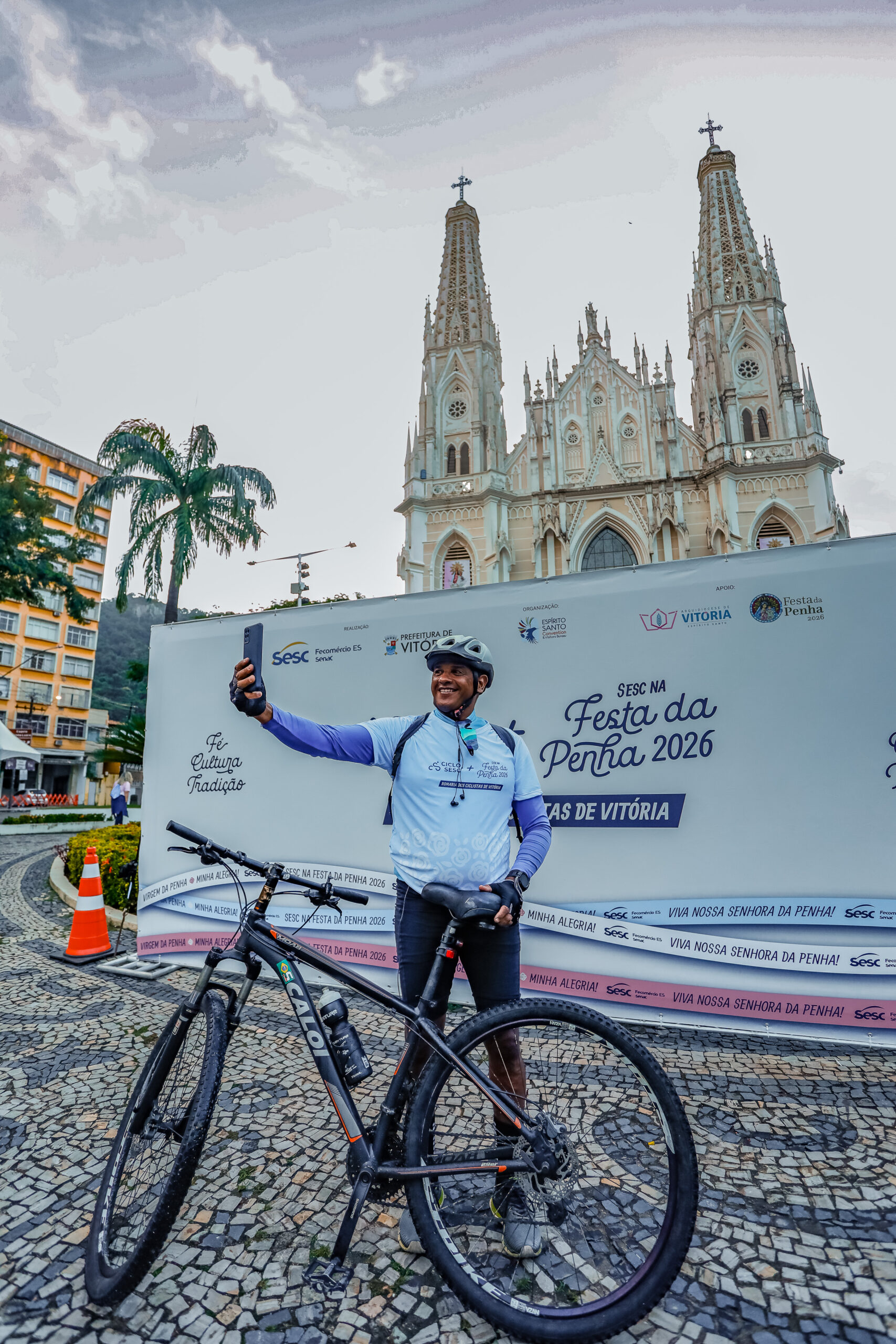 A integração do CicloSesc à tradicional Romaria dos Ciclistas de Vitória transformou o trajeto de 10 quilômetros entre a Catedral Metropolitana e a Prainha em um espetáculo visual. Os participantes coloriram a Terceira Ponte de azul, unindo a prática esportiva à devoção mariana.