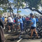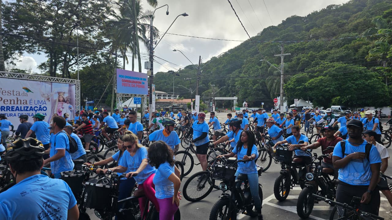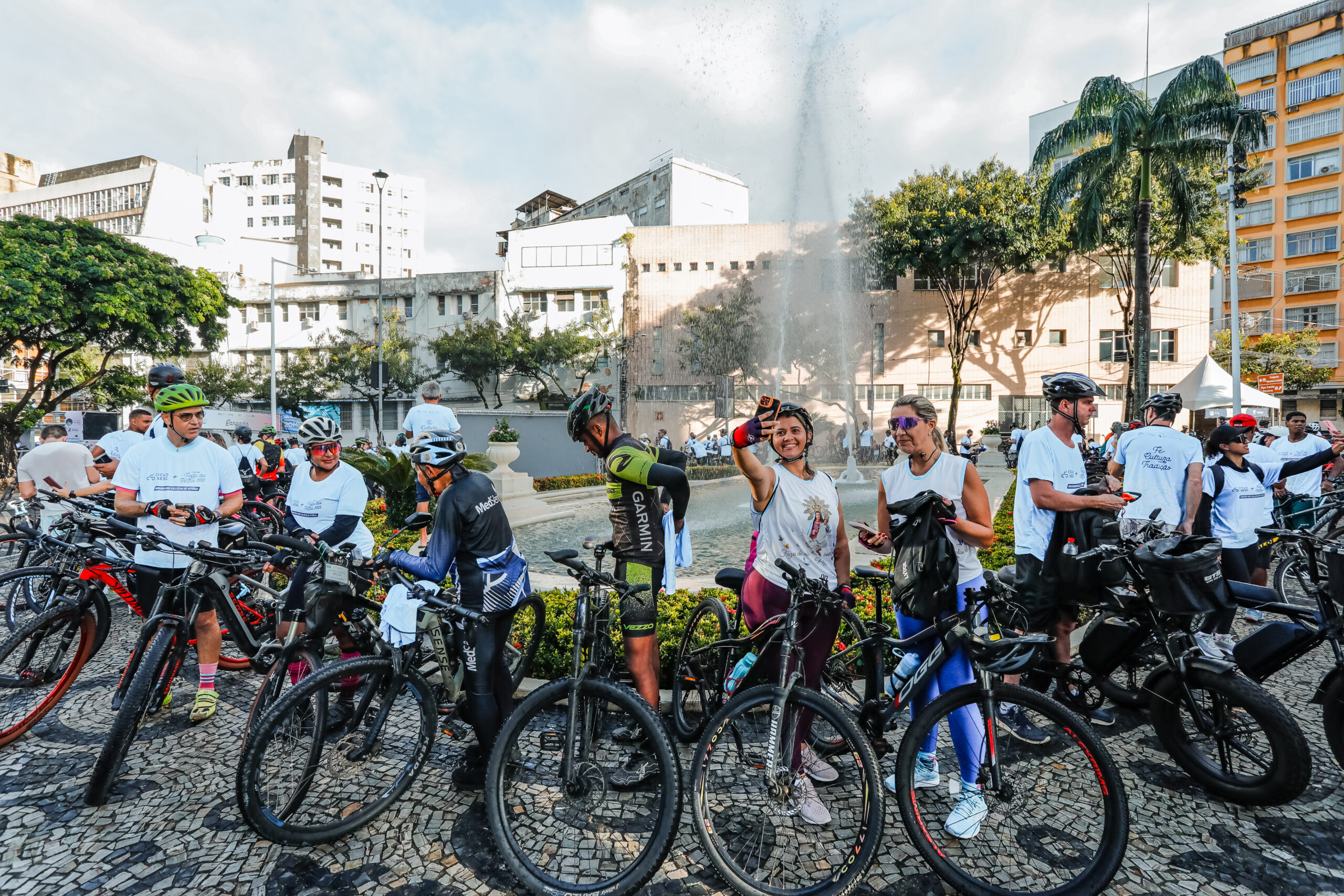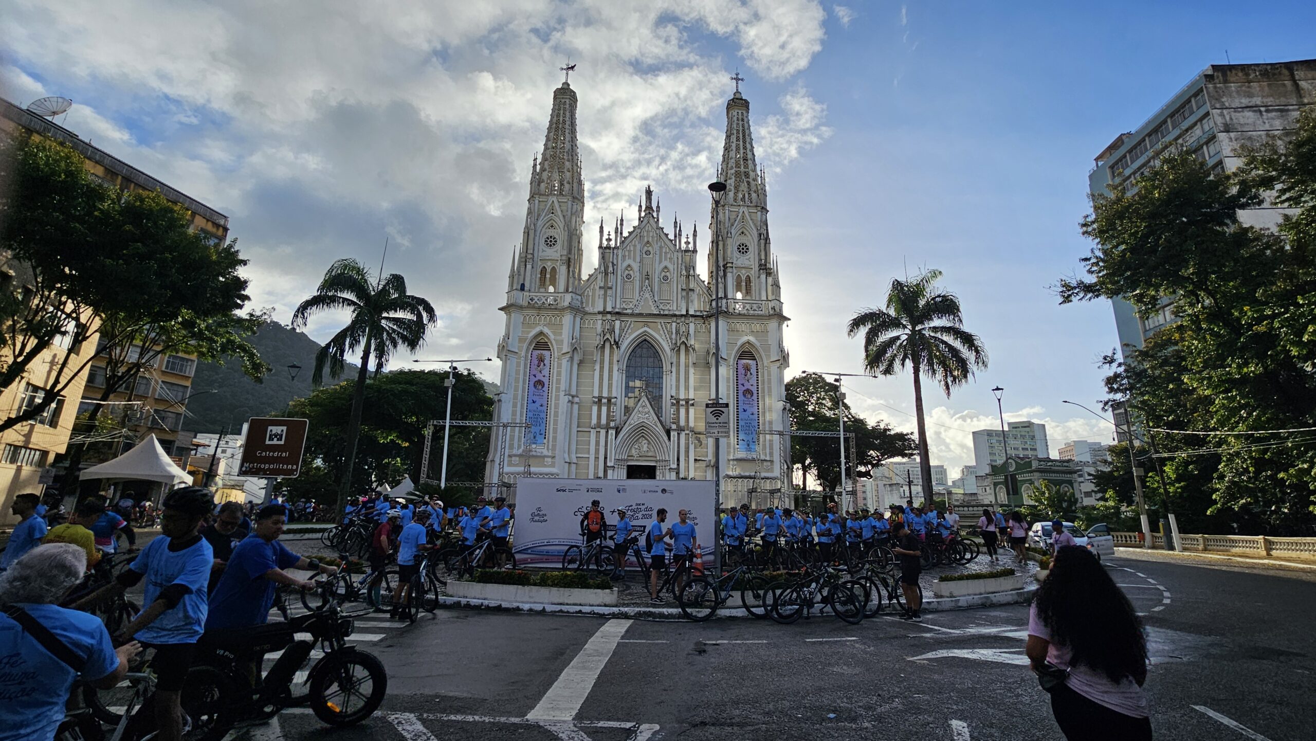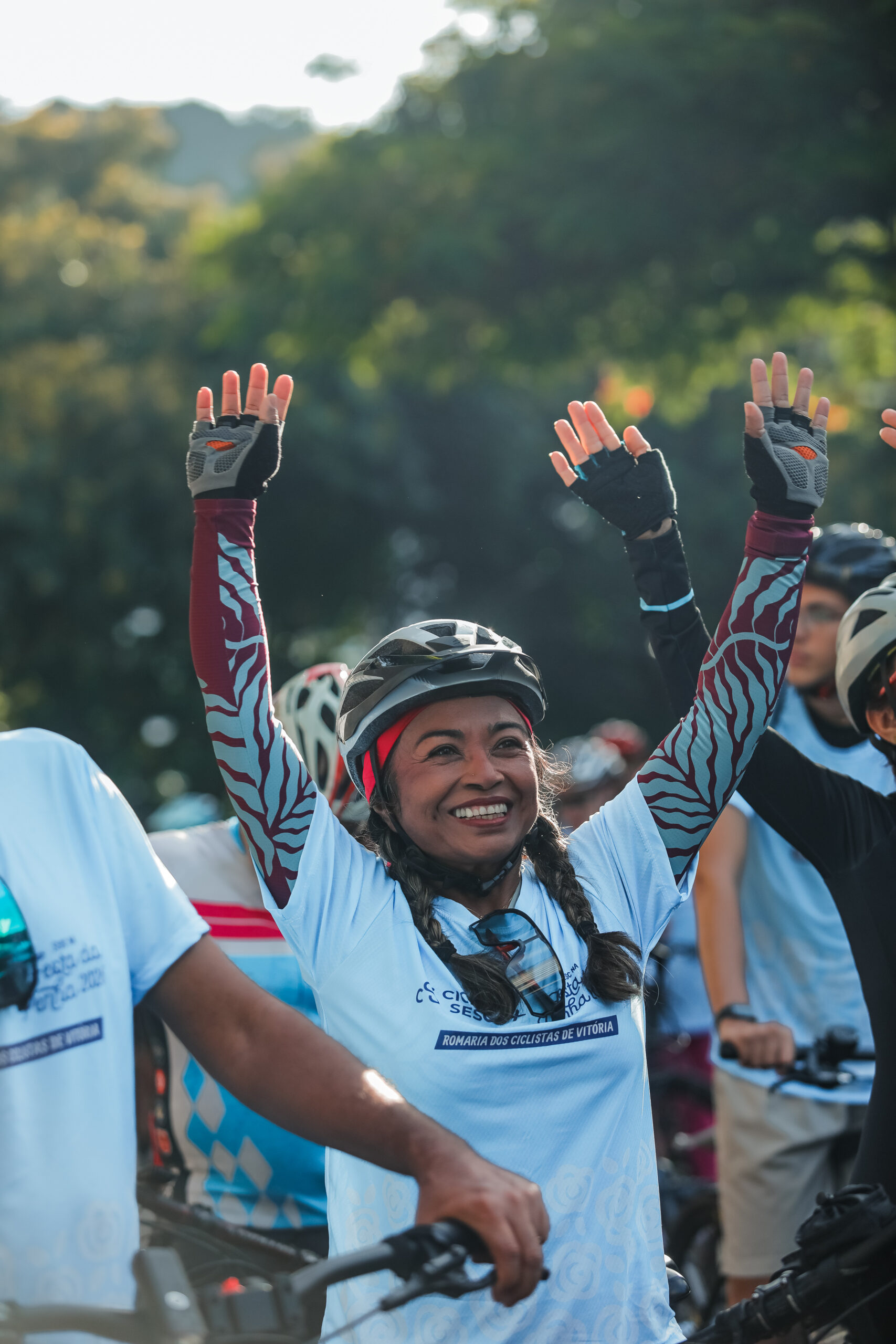 A integração do CicloSesc à tradicional Romaria dos Ciclistas de Vitória transformou o trajeto de 10 quilômetros entre a Catedral Metropolitana e a Prainha em um espetáculo visual. Os participantes coloriram a Terceira Ponte de azul, unindo a prática esportiva à devoção mariana.