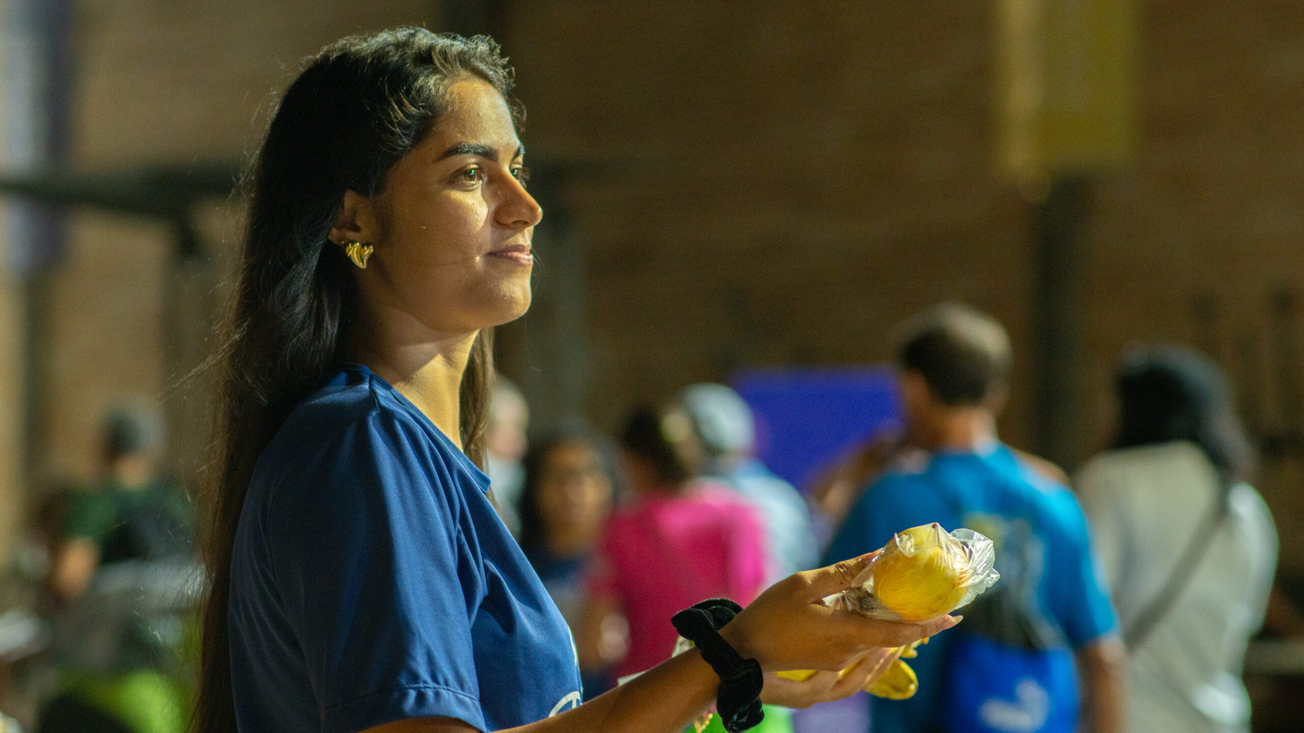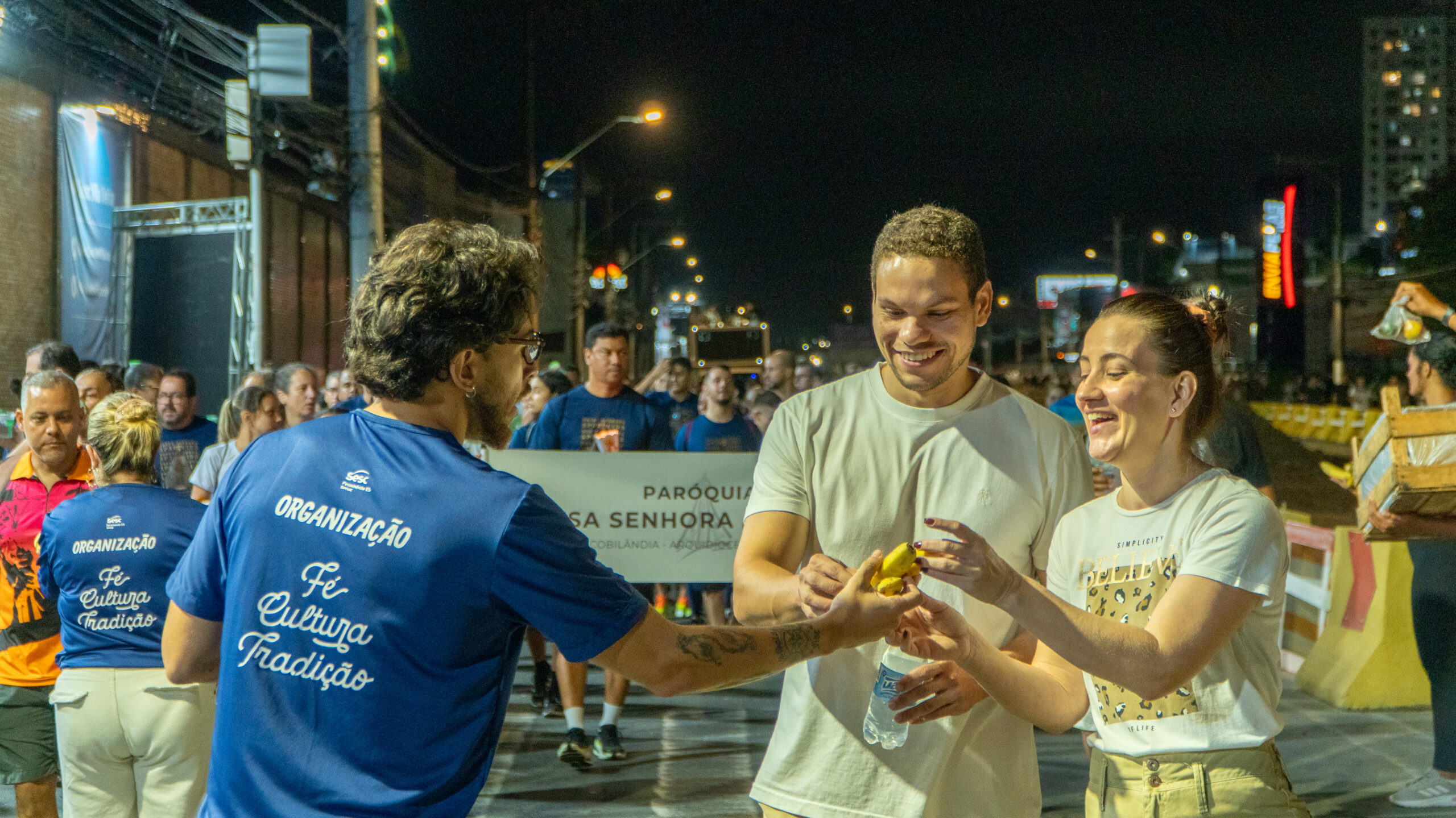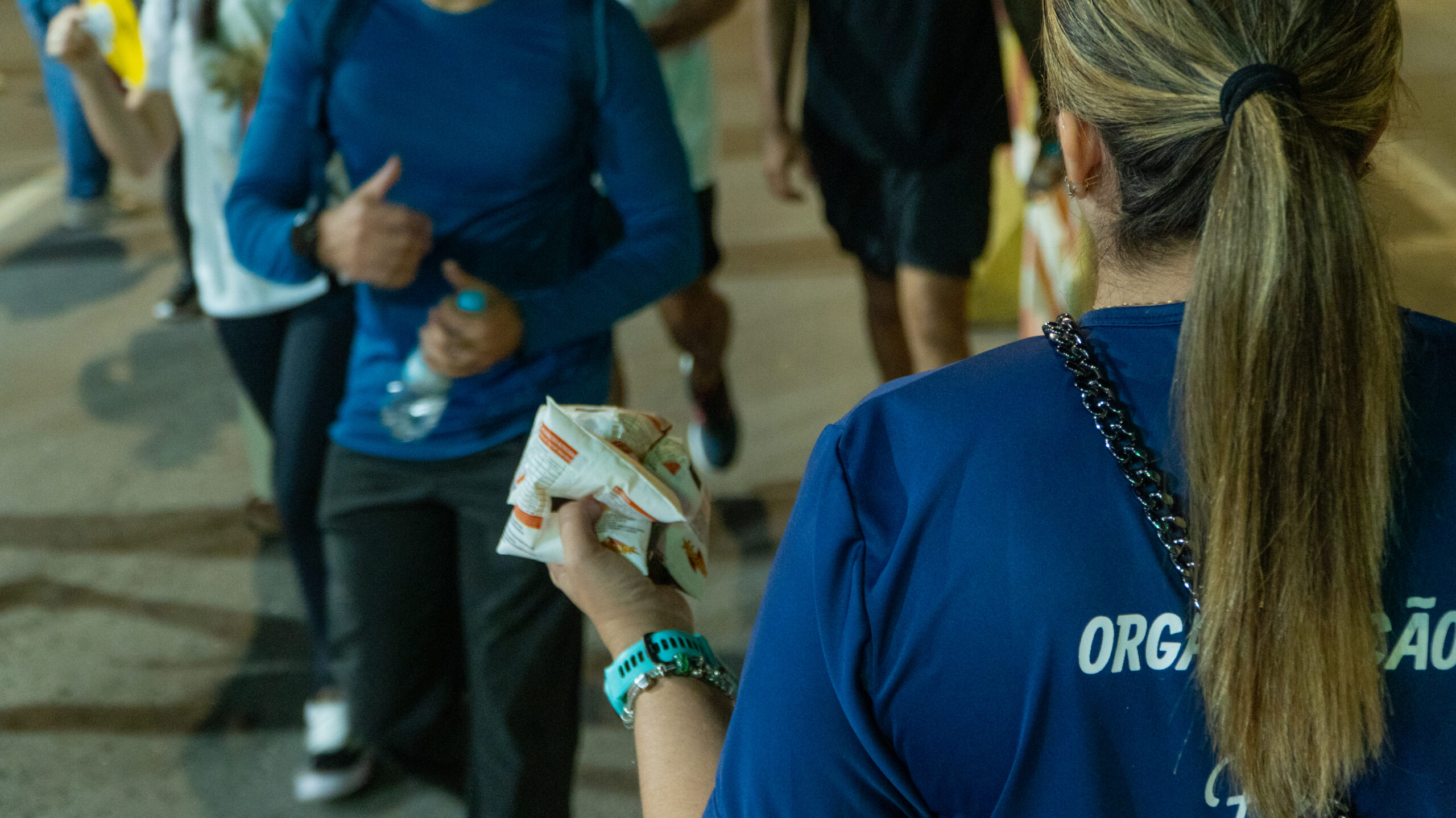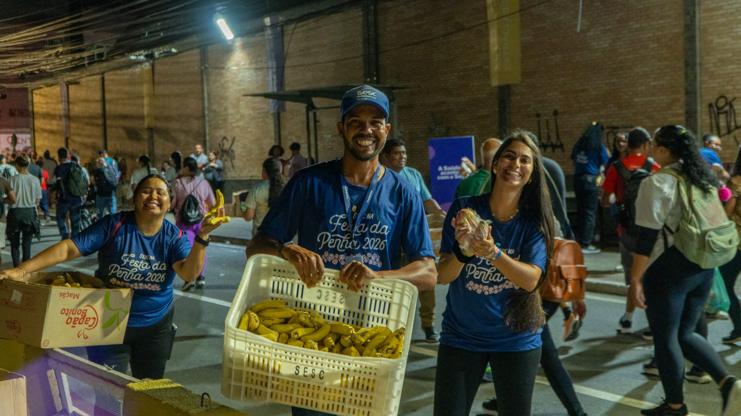 Como forma de apoiar os romeiros durante a caminhada, foram entregues kits lanche, bananas e copos de água para os romeiros, em uma ação mobilizada pelas Gerências de Saúde e Assistência Social do Sesc-ES, reforçando o compromisso da instituição com a promoção da saúde e do bem-estar.