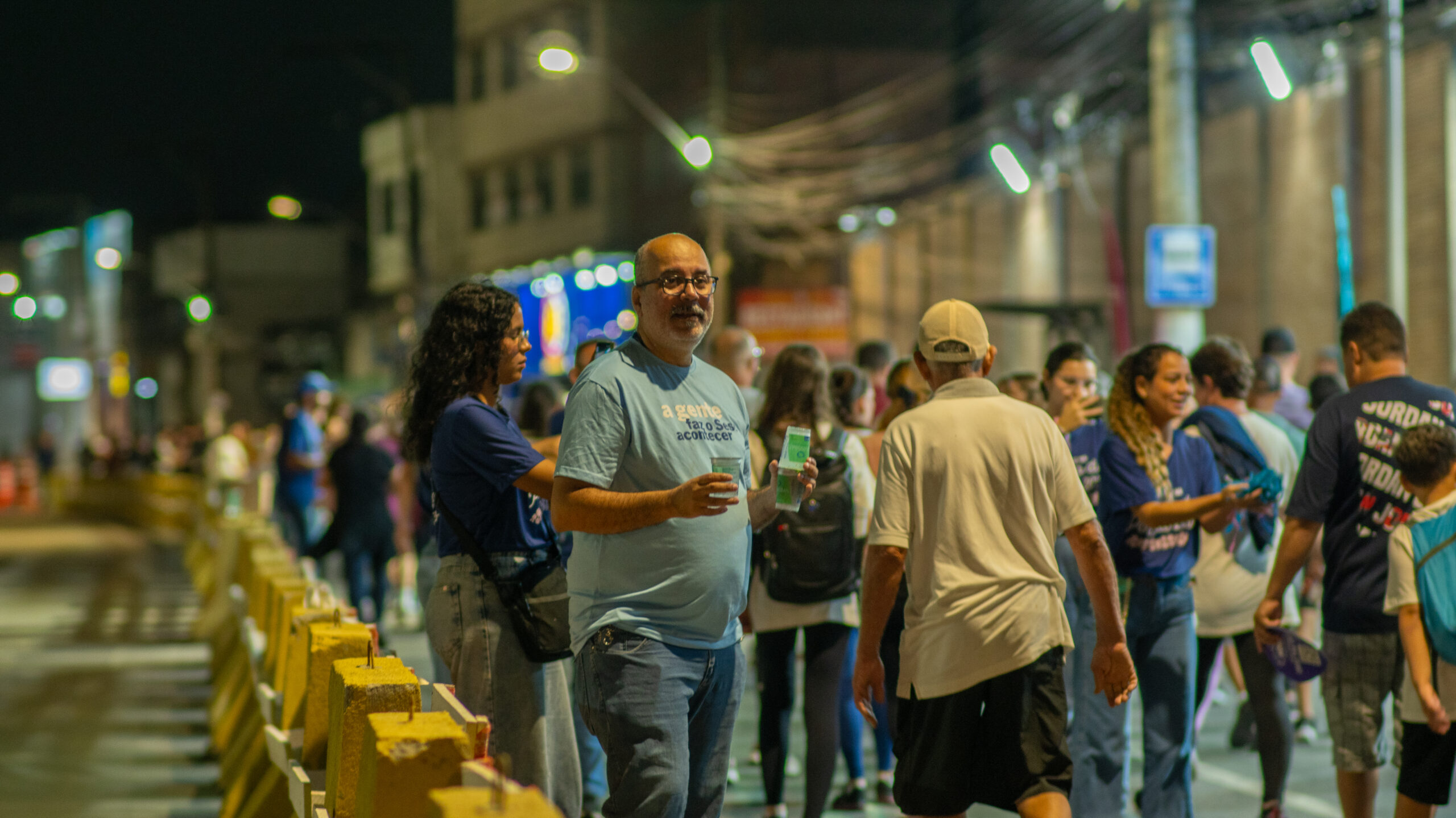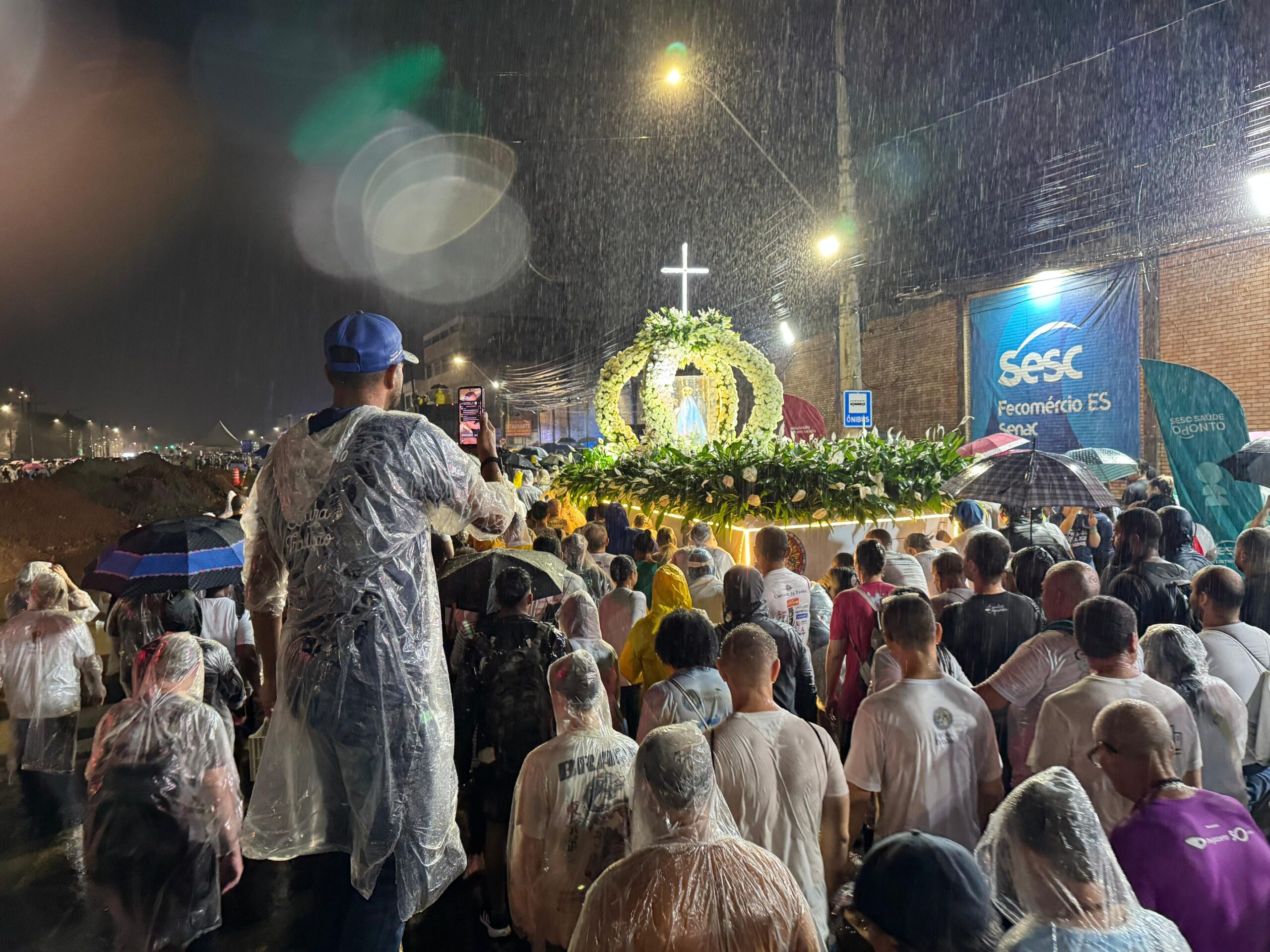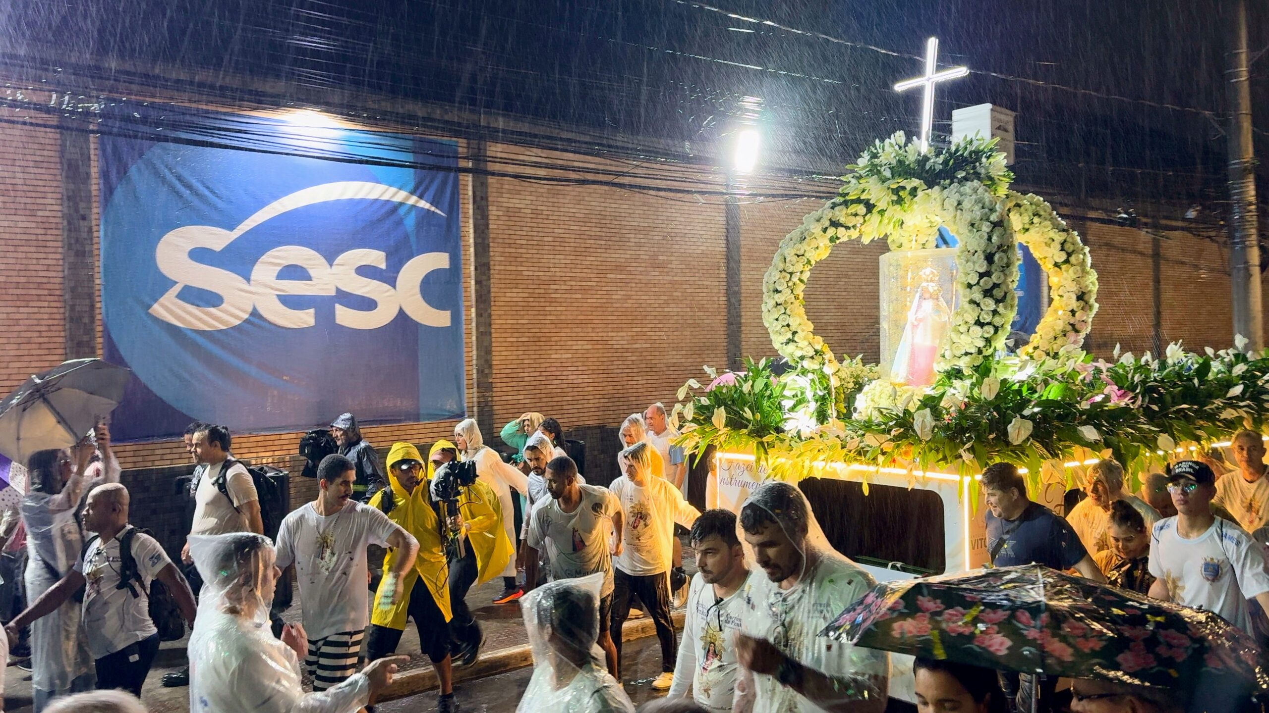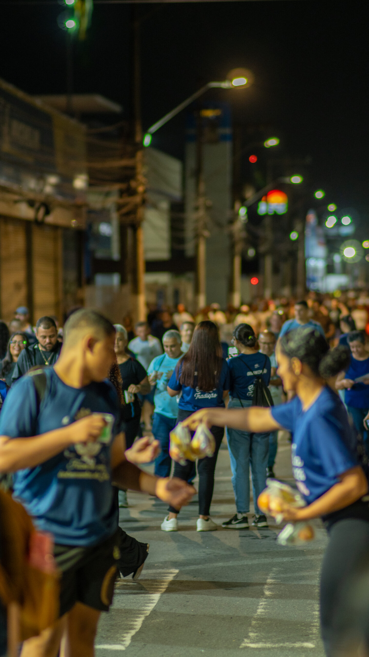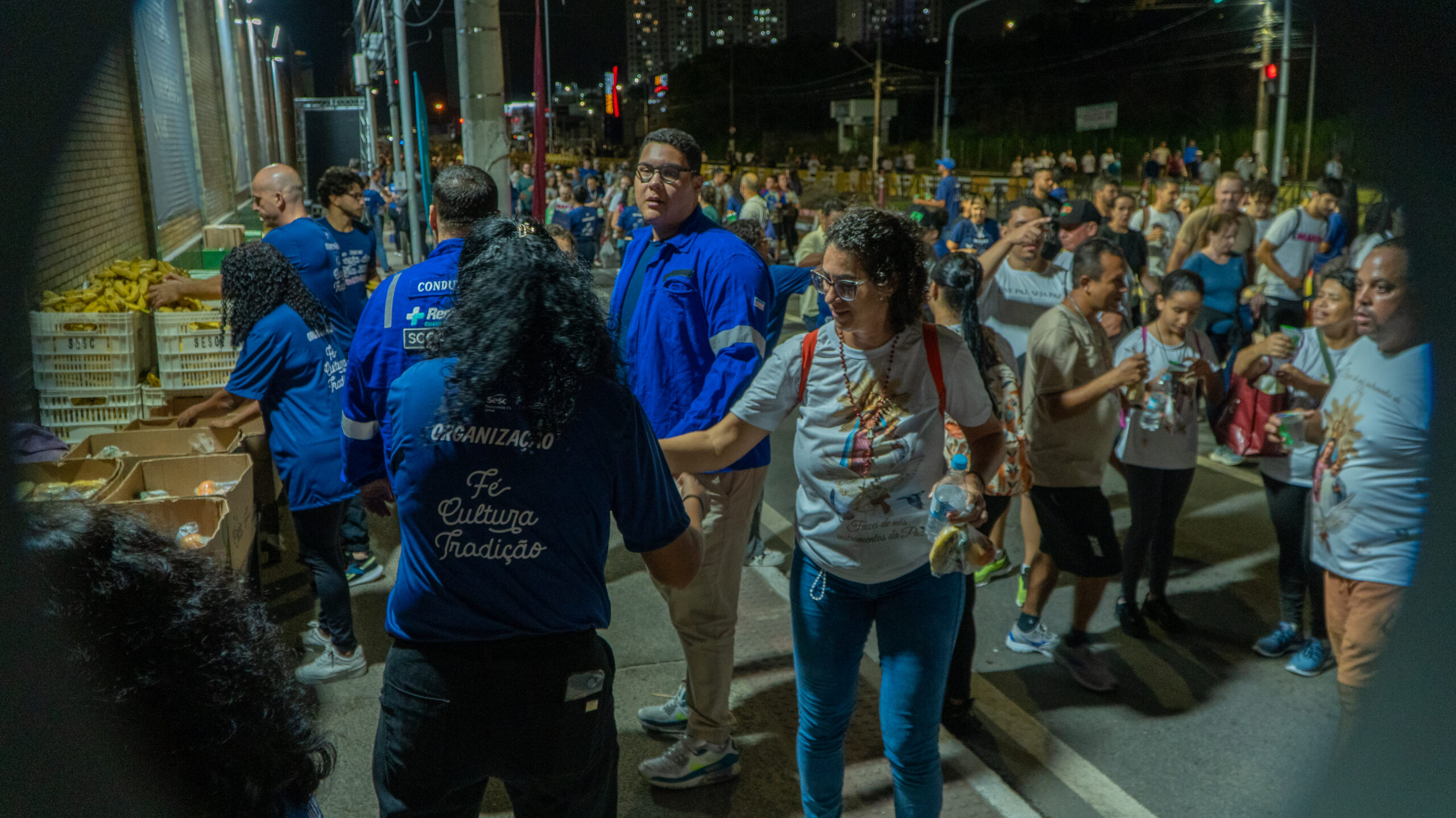 O Sesc Espírito Santo também marcou presença na Romaria dos Homens, que aconteceu no sábado, dia 11 de abril, um dos momentos mais aguardados da tradicional Festa da Penha. Cerca de 1,2 milhão de fiéis participaram da Romaria, segundo a organização do evento. Mesmo sob chuva em parte do percurso, os romeiros caminharam por 14 quilômetros durante a noite, em um ato de fé, devoção e agradecimento.
