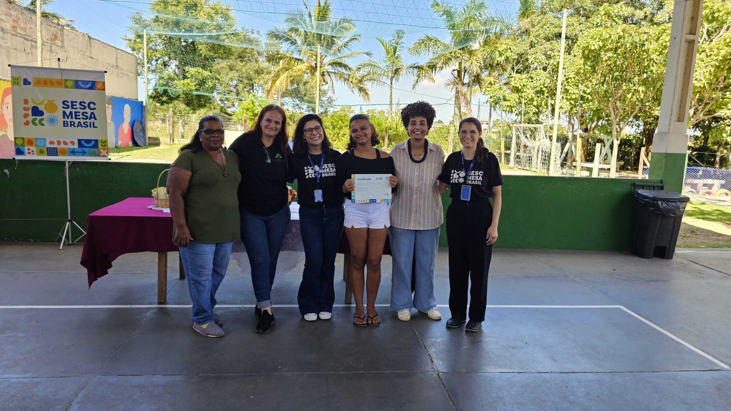 “É com muito prazer que estamos encerrando o projeto Territórios Solidários, uma iniciativa do Departamento Nacional executada pelo Sesc Mesa Brasil aqui no Sesc Espírito Santo, em parceria com o projeto Semente, onde foram realizados cursos sobre horta, além de oficinas e palestras sobre segurança alimentar e nutricional”, compartilhou a nutricionista do Sesc Mesa Brasil, Gabriela Menelli.