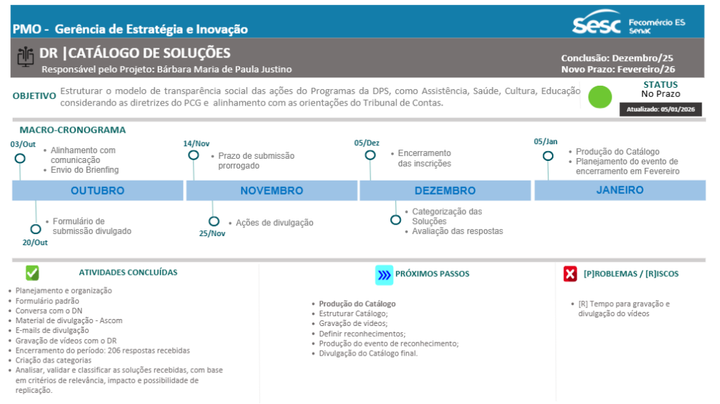 Foco em padronizar rotinas e melhorar a comunicação nos processos internos ◦ Responsável: Kessia Gomes Paradela Lovati ◦ Unidade: Sede Administrativa ◦ Ano: 2025 • Qual […]