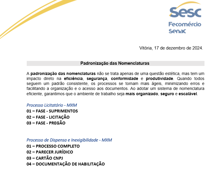 Foco em garantir conformidade e segurança jurídica nos processos ◦ Responsável: Equipe da Gerência de Suprimentos ◦ Unidade: Sede Administrativa ◦ Ano: Março de 2025 • […]