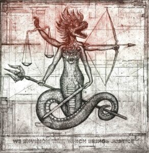 “Imprinting Justice” has been selected as the title for this Exchange: “Justice” pointing to the focus of the submitted works; and “Imprinting” alluding not only to the specific tool of printmaking being used, but also, and more importantly, to the active role of the artist in using their print for building and instauring a change toward justice.