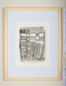 This monotype is part of a series of prints created to be stored in a chair with a drawer in the seat. The drawings are kept inside but can be viewed and appreciated when the drawer is opened. This print explores the relationship between place, occupation, utility, and memory — a dialogue about space, time, and perception. In this drawing, I think of the object in a way that it cannot be occupied but seen, contemplated for its existence. Chairs can be seen as representations of the passage of time and its transformations. In this and other works, I seek to reflect on how we perceive the existence of things and how we relate to them. This is an invitation to challenge our perception and reflect on its many layers.
